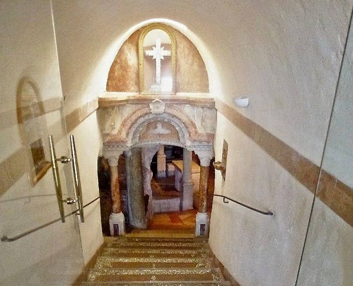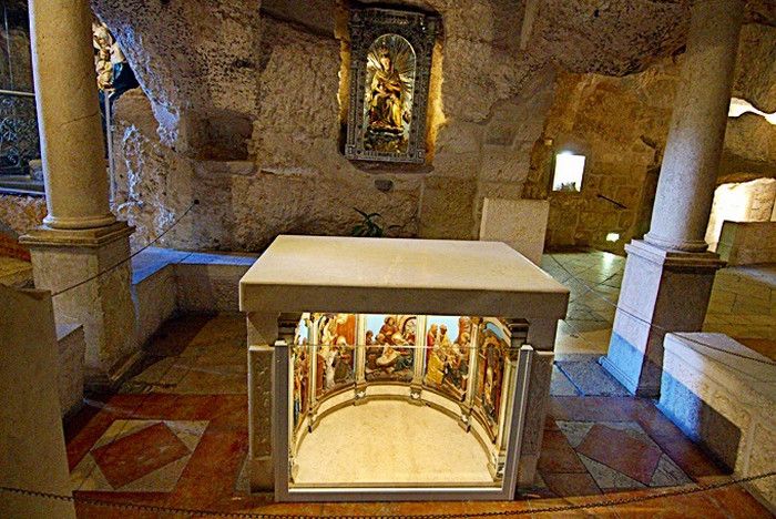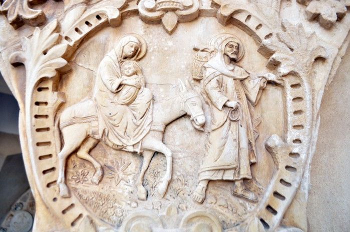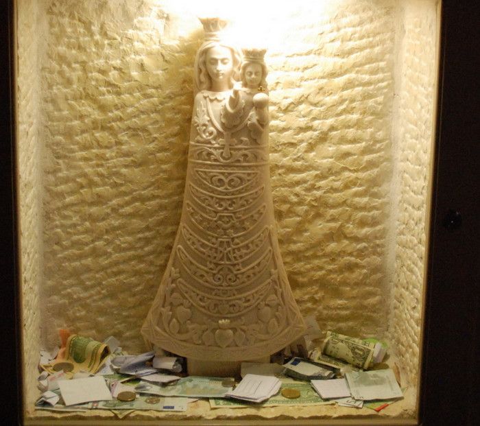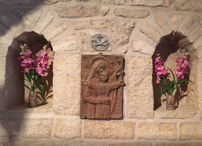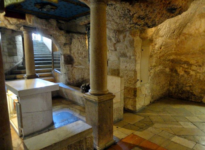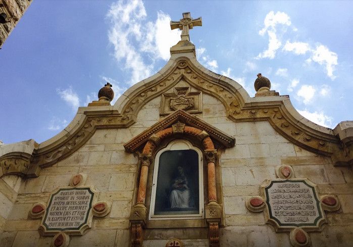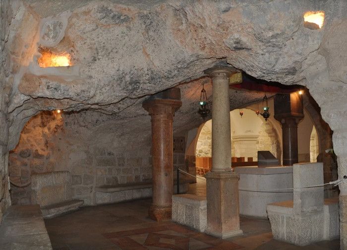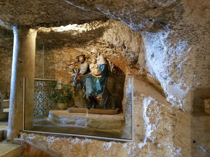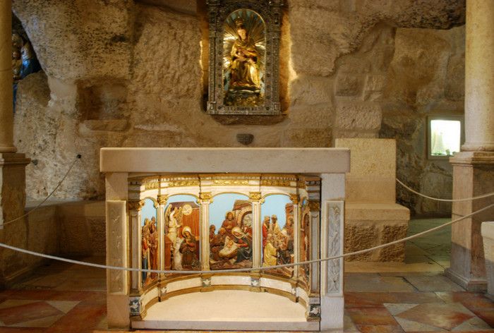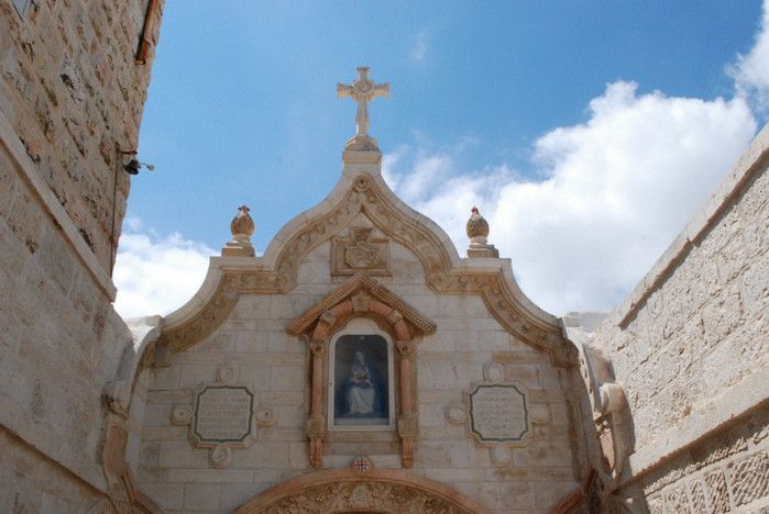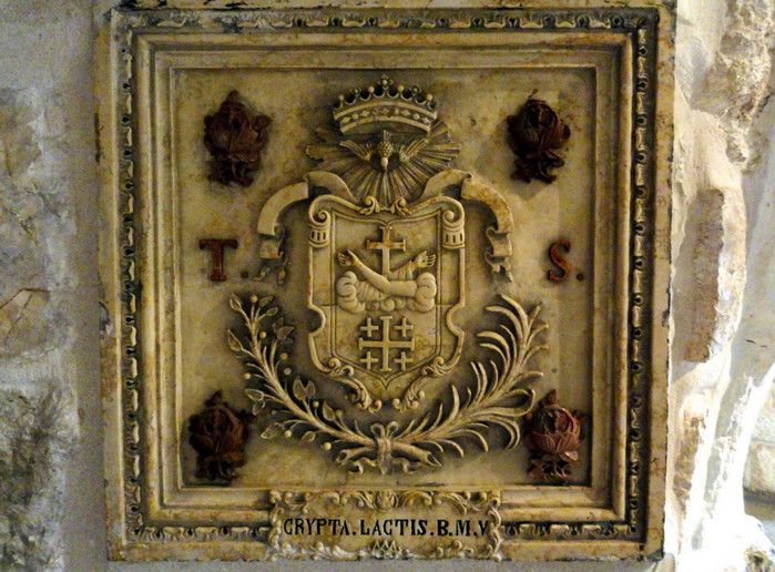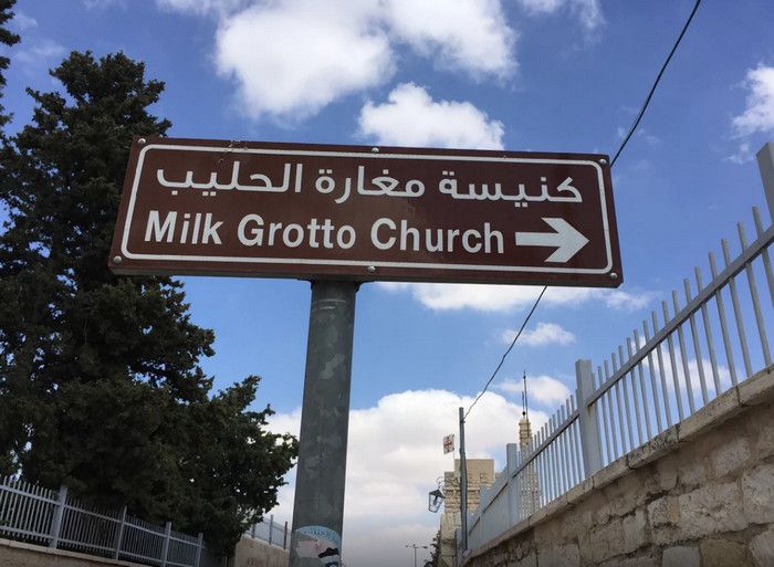 Молочный Грот (Церковь Лактации) - одна из самых почитаемых христианских и мусульманских святынь, расположен в Вифлееме, рядом с Базиликой Рождества Христова. По преданию, в этом гроте во время Избиения младенцев (до бегства в Египет) скрывалось Святое Семейство, спасаясь от воинов царя Ирода, поверившего в предсказание о приходе Мессии и приказавшего уничтожить всех младенцев в Вифлееме. Согласно легенде, когда Дева Мария кормила грудью младенца Иисуса, несколько капель молока попали на стены пещеры, выложенные из камня красноватого оттенка, и окрасили их в белый цвет. С тех пор пещеру называют Молочным гротом, а порошок из белого камня (капель молока Богородицы) со стен пещеры стали считать чудодейственным. Издавна женщины Вифлеема использовали отколотые от стен пещеры кусочки белого камня и порошок из него для лечения различных заболеваний. Считается, что порошок излечивает женское бесплодие и помогает молодым матерям при нехватке грудного молока. Уже в V веке над пещерой, ставшей местом паломничества со времён раннего христианства, была возведена небольшая часовня, от которой до наших дней сохранились фундамент и фрагменты красочного мозаичного пола. В 1375 году подлинность и святость пещеры была подтверждена буллой Папы Римского Григория XI, а земля, на которой расположен Молочный Грот, передана в управление ордену Францисканцев. В 1871 году на фундаменте византийского храма монахами-францисканцами была построена католическая часовня Молочного Грота, известная также как Церковь Лактации. Из часовни в грот ведёт лестница, состоящая из 13 ступеней, вход в пещеру украшен декоративной лепниной и скульптурным изображением белого голубя - символа Святого Духа. В пещере, в том месте, где Дева Мария кормила грудью младенца Иисуса, установлена чудотворная икона с изображением Божьей Матери и младенца Христа. В гроте размещены скульптурные изображения сцен из Писания и жизни Святого Семейства. Стены церкви Лактации выложены из белого камня и украшены резьбой, выполненной искусными Вифлеемскими умельцами. Центральное место в церкви занимает статуя Девы Марии с Младенцем, в нишах стен расположены небольшие скульптуры Святого Георгия Победоносца, пророка Ильи и царя Давида. Перед входом в Молочный Грот есть небольшое помещение, стены которого сплошь увешаны фотографиями младенцев и благодарственными надписями счастливых родителей, молитвы которых были услышаны Богородицей.