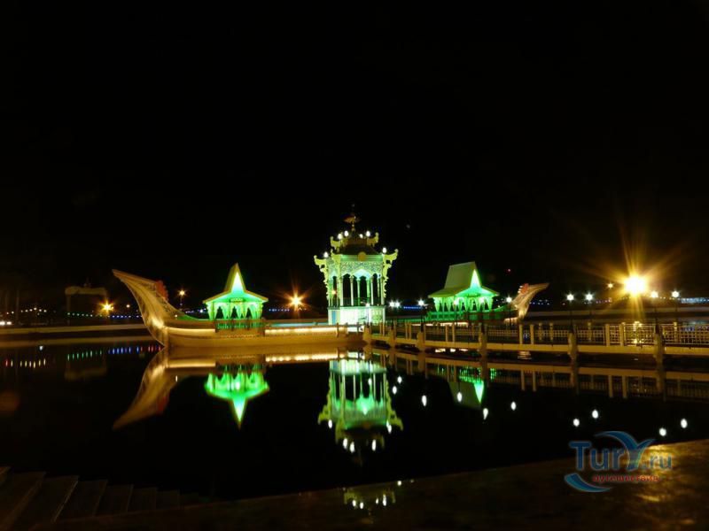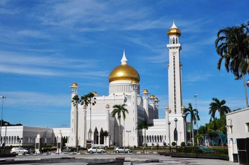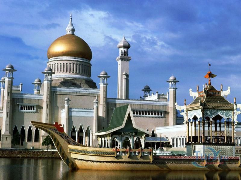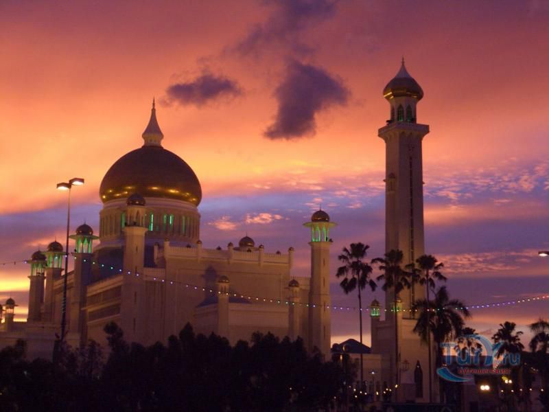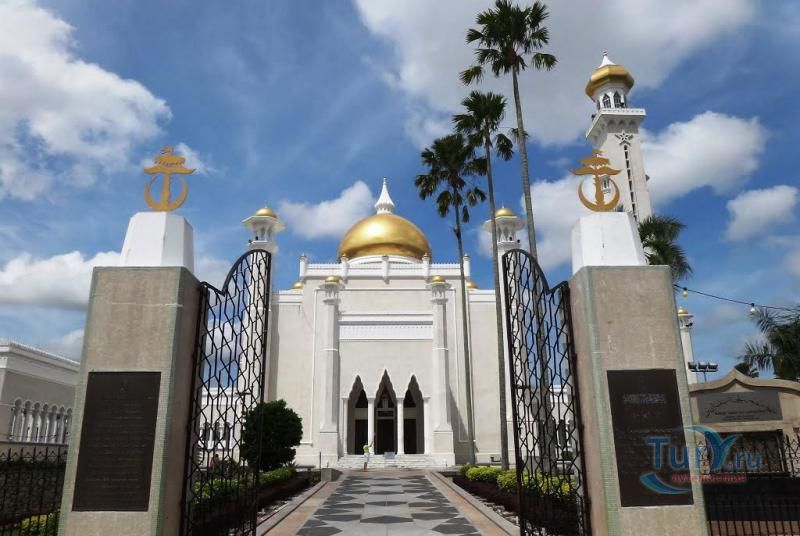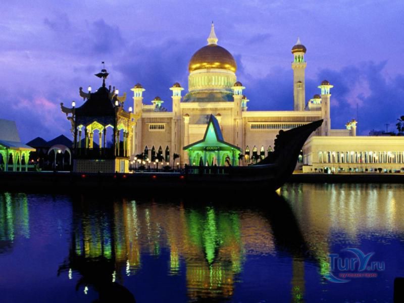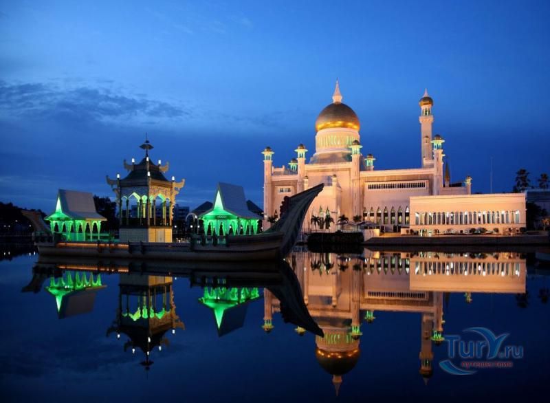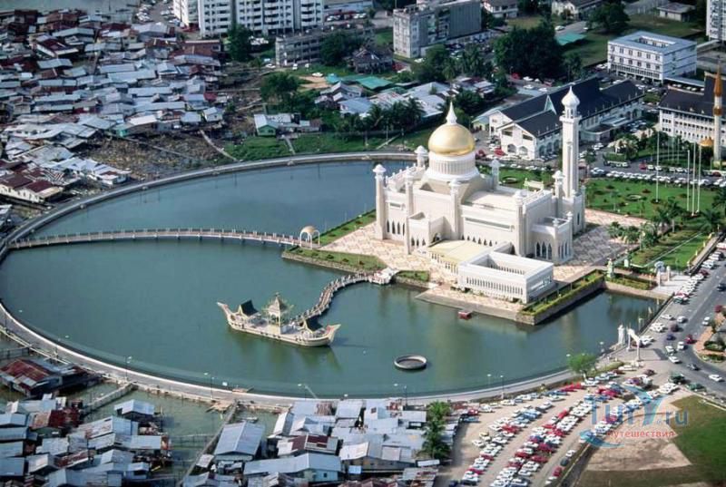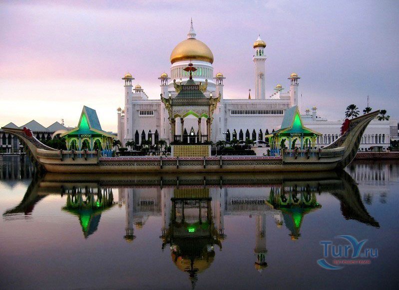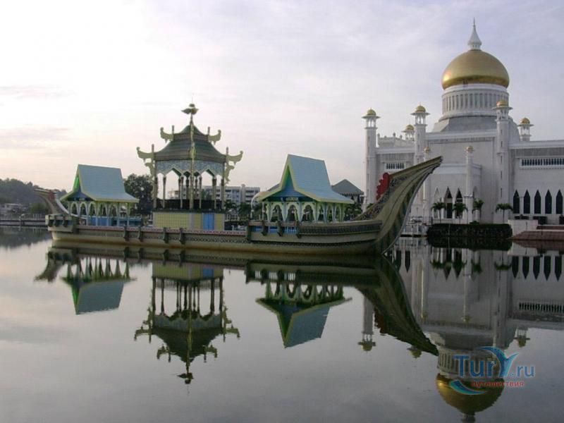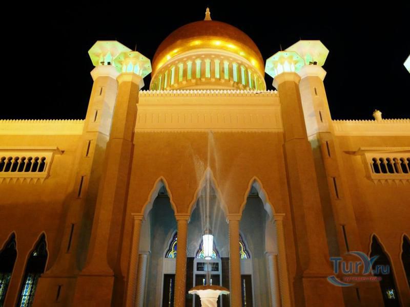 Своеобразным национальным символом для Султаната Бруней стала возвышающаяся над его столицей мечеть Омара Али Саифуддина. Построенная в 1958 г. с многочисленными арками, башенками, колоннами, куполами и единственным стройным и высоким минаретом мечеть представляет собой результат причудливой игры воображения архитектора, вдохновленного сборником арабских сказок "Тысяча и одна ночь". Огромный позолоченный купол этого грандиозного сооружения, достигающий высоты 52 метров виден практически из любой точки города. После изысканно роскошного вида мечети некоторых может несколько разочаровать современная простота и незатейливость ее интерьера. В окружающей мечеть лагуне установлен выполненный из цемента в натуральную величину макет баржи султана XVI века. По четвергам и пятницам в мечеть допускаются лишь мусульмане для совершения богослужений.