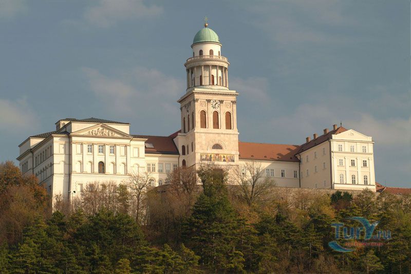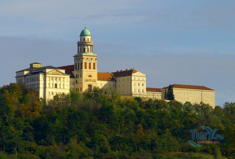 Бенедиктинское аббатство Паннонхалма считается одним из самых древних монастырей Венгрии. Первые монахи прибыли в Паннонхалму в 996 году по призыву князя Гёзы. В 1001 году они освятили небольшую церковь на вершине горы. Расположено аббатство в 20 километрах к юго-востоку от города Дьёр, на вершине холма святого Мартина, высота которого составляет 282 метра. Именно здесь родился венгерский святой Мартин (Мартон) Турский в IV веке. Дом святого находился у подножия холма, который впоследствии и был назван в его честь. Мартин Турский прославился своей святостью и милосердием по отношению к нищим и обездоленным. Одна из легенд рассказывает о том, как Мартин отрубил половину своего плаща и отдал его нищему, чтобы тот мог согреться. Этот эпизод попал и на фрески в самом аббатстве отражающие жизнеописание Святого Мартона. Герб аббатства Паннонхалмы плавными линиями разделен на четыре поля. На левом желтеет кисть винограда. Виноградарство и виноделие - традиционное занятие монахов Паннонхальмы. И не смотря на то, что в коммунистический период виноделие не велось, так как виноградники монастыря были национализированы, вековые традиции не были утеряны. После падения коммунизма и возвращения виноградников монастырю производство было возобновлено. Площадь виноградников составляет 37 гектаров, а винодельческий завод занимает площадь 2000 м2. Более того, осенью для туристов устраиваются зрелищные дегустации. Традиционные для Паннонхалмы сорта вин — райн рислинг, совиньон блан, гевюрцтраминер, вельшрислинг, эзерьо и сарфехер. В двадцатом столетии монахи начали изготавливать и более интернациональные сорта: шардоне, пино блан, пино нуар, мерло и каберне франк. На правом поле герба расположена рукописная книга, старинный фолиант. Монахи аббатства традиционно занимались переписыванием книг. Монастырская библиотека является крупнейшим не государственным книжным собранием страны. Здесь хранятся около 360 тысяч томов книг, самые древние датируются XI веком. В архиве библиотеки хранится первый памятник письменности на венгерском языке — Устав бенедиктинского аббатства Тихань (1055 год). Рядом находится другой документ, подписанный королем Иштваном Святым, в соответствии с которым аббатство Паннонхалма получило особые привилегии. Библиотека Паннонхалма — это настоящий храм науки. По периметру двух ее этажей расположены массивные деревянные шкафы, заполненные фолиантами. Резные полки библиотеки, ее шкафы были изготовлены столяром из Паннохалмы - резчиком по дереву. Дверцы у шкафов инкрустированы и складываются в орнаменты. Сводчатые потолки украшены средневековыми фресками, среди которых изображения, символизирующие четыре факультета университетов того времени: юриспруденцию, теологию, медицину, факультет семи свободных искусств. Здесь можно полюбоваться огромным старинным глобусом, расположенном в одном из залов библиотеки. Перед входом в библиотеку установлена статуя студиозуса что-то усердно записывающего за партой. Таких студентов можно увидеть в аббатстве и в наши дни. При монастыре открыт бенедиктинский колледж для мальчиков, которые живут в общежитии, расположенном на территории Паннонхалмы. Не очень большой процент выпускников становится священнослужителями, но конкурс в это учебное заведение огромный. Поступить сюда стрем