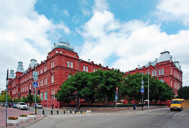 Музей расположен в здании - памятнике истории и архитектуры. Здание построено в 1906 г. известным астраханским архитектором В. Вальдовским. Величественный экстерьер здания удачно сочетается с классическим интерьером, великолепной лепниной потолков.