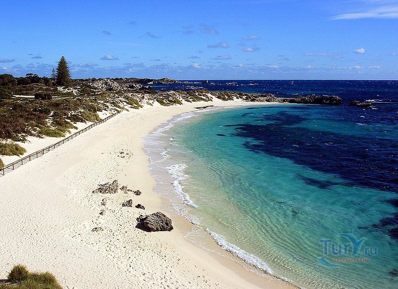 Остров Роттнест расположен недалеко от австралийского города Перт. Это отличное место для уединенного пляжного отдыха, местное побережье отличается удивительно чистым морем и небольшим количеством туристов. Площадь острова составляет 19 квадратных километров, но, тем не менее, ежегодно его посещают около 15 тысяч человек. Самый удобный способ осмотреть местные достопримечательности – велосипед, так как из одного конца острова в другой можно добраться буквально за полчаса.