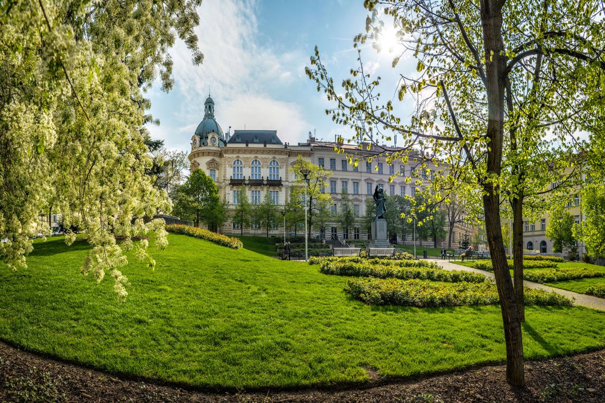 Доминантой Гавличковой площади, аккуратно оформленной цветочными клумбами, является скульптура Карла Гавличека Боровского, чешского сатирика, поэта и журналиста. Угловое здание ратуши Праги-3 является историческим строением и служит не только в качестве официального центра районного самоуправления. Здесь располагаются галерея и небольшой внутренний двор со скульптурами.