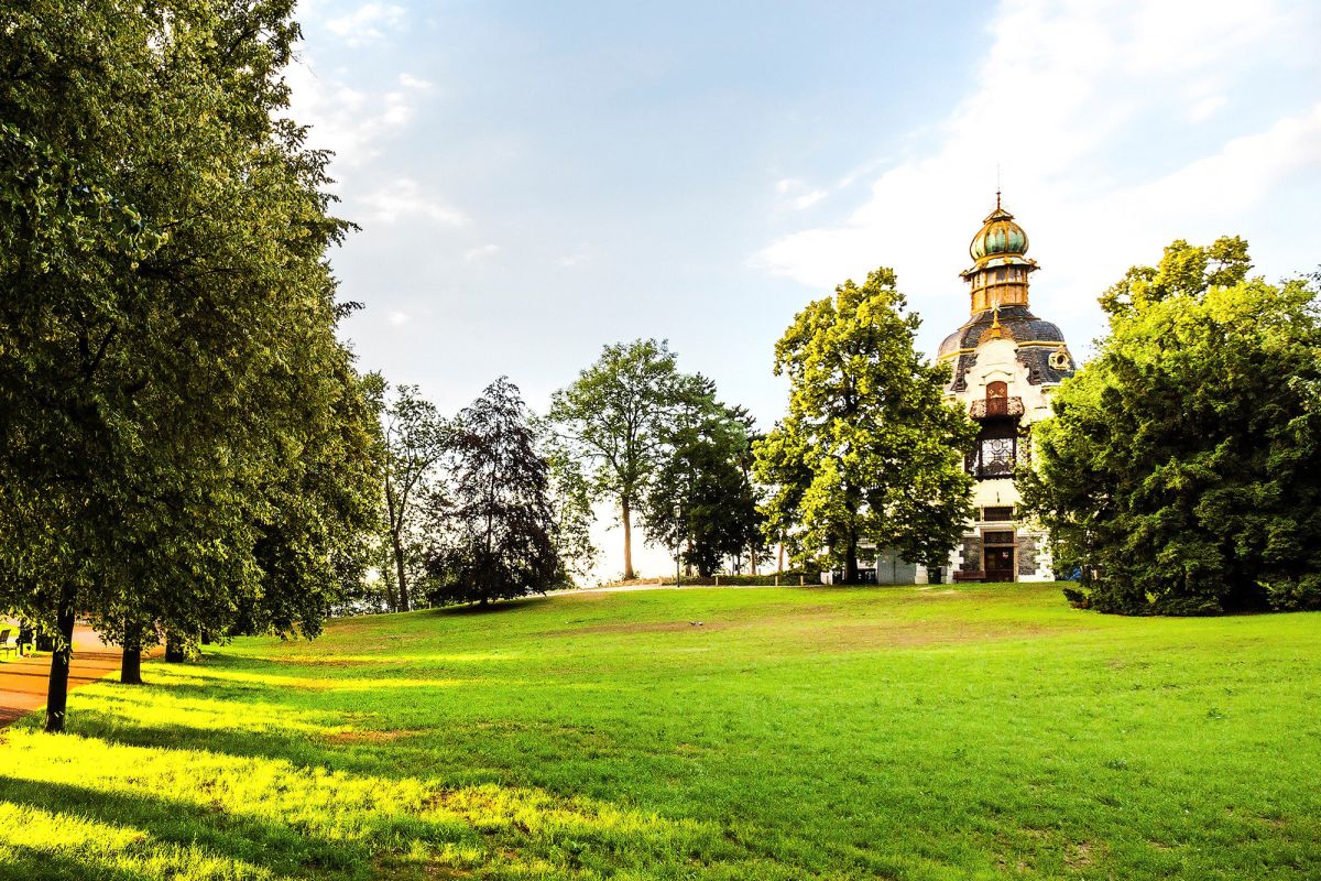 Одно из самых примечательных и эклектичных зданий было изначально задумано, как репрезентативный павильон Комаровского металлургического завода на пражской Юбилейной земской выставке 1891 года. Это было первое в Праге здание с чугунной конструкцией. Сегодня здесь находится эксклюзивный ресторан с одним из прекраснейших панорамных видов на столицу и её мосты.