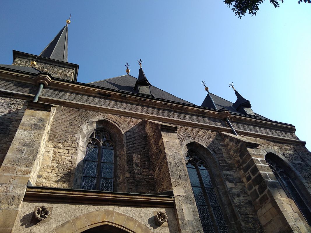 Костёл был изначально построен в виде романской базилики во 2-й половине 12-го столетия, как приходской костёл исчезнувшего поселка Поржичи. На протяжении веков он многократно перестраивался, и сейчас панораму Праги украшают его 4 башни, однако колокола находятся только на стоящей по соседству колокольне. В 1989 г. костёл был возвращён ордену крестоносцев с красной звездой.