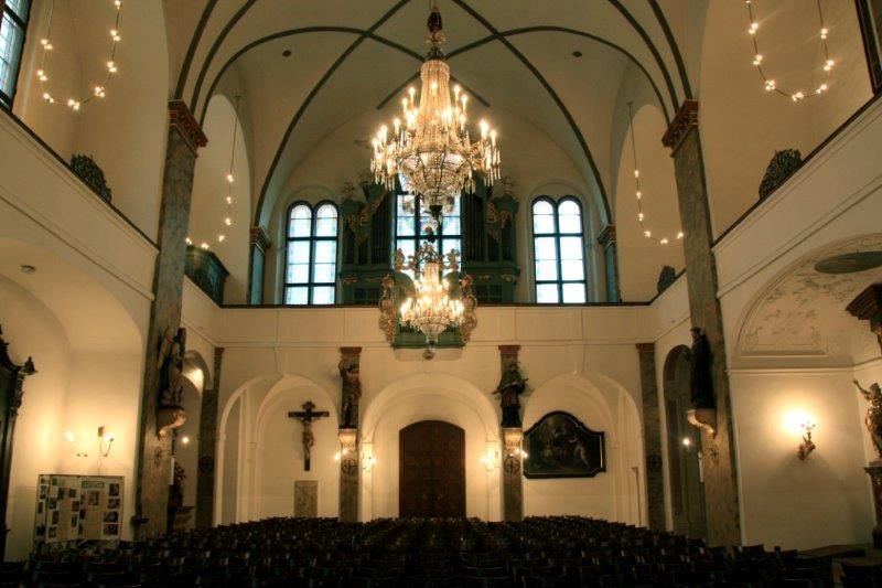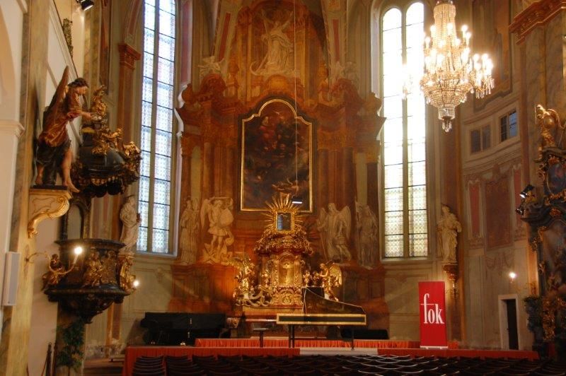 Костёл Симона и Иуды стоит на месте бывшего госпиталя и часовни. В 18-м веке он был перестроен в стиле высокого барокко и снабжён уникальным органом с чудесным звуком, на котором в своё время играли великие музыканты – Моцарт и Гайдн. Сегодня костёл находится в ведении Пражского симфонического оркестра FOK, который использует его в качестве концертного зала.