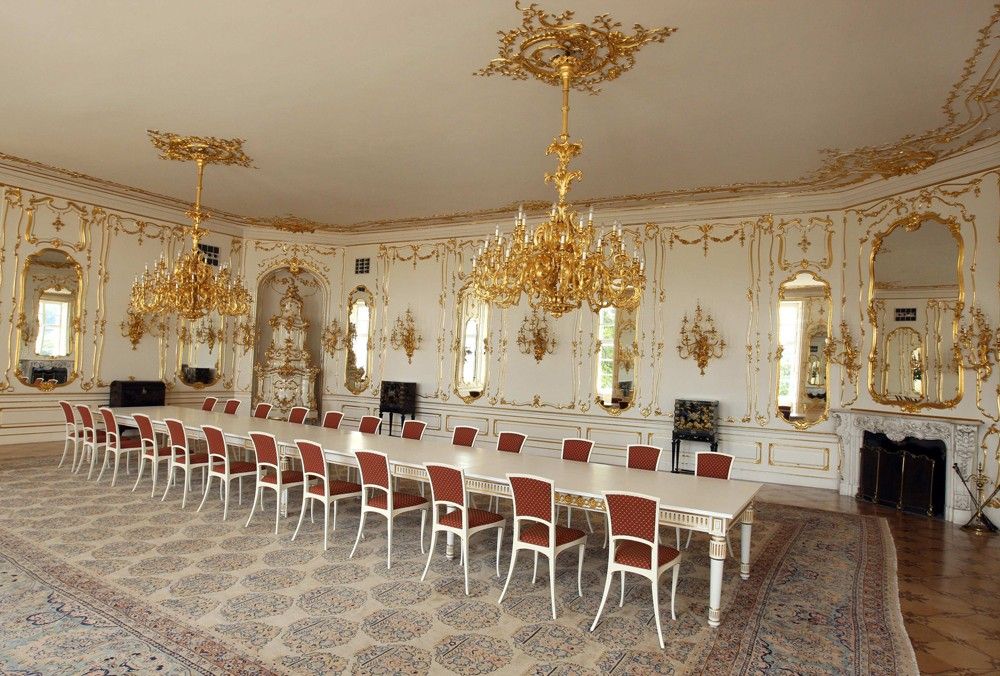 Туристам, посещающим Пражский Град, эти представительские помещения, как правило, не демонстрируются. Салоны, залы, гостиные комнаты, предназначенные для приёма официальных делегаций президентом республики, занимают весь первый этаж так называемого Нового дворца. Некоторые из них служили в качестве репрезентационных залов и жилых помещений для чешских правителей ещё в 16-м веке. Весь комплекс Нового дворца был консолидирован и перестроен во времена Марии-Терезии.