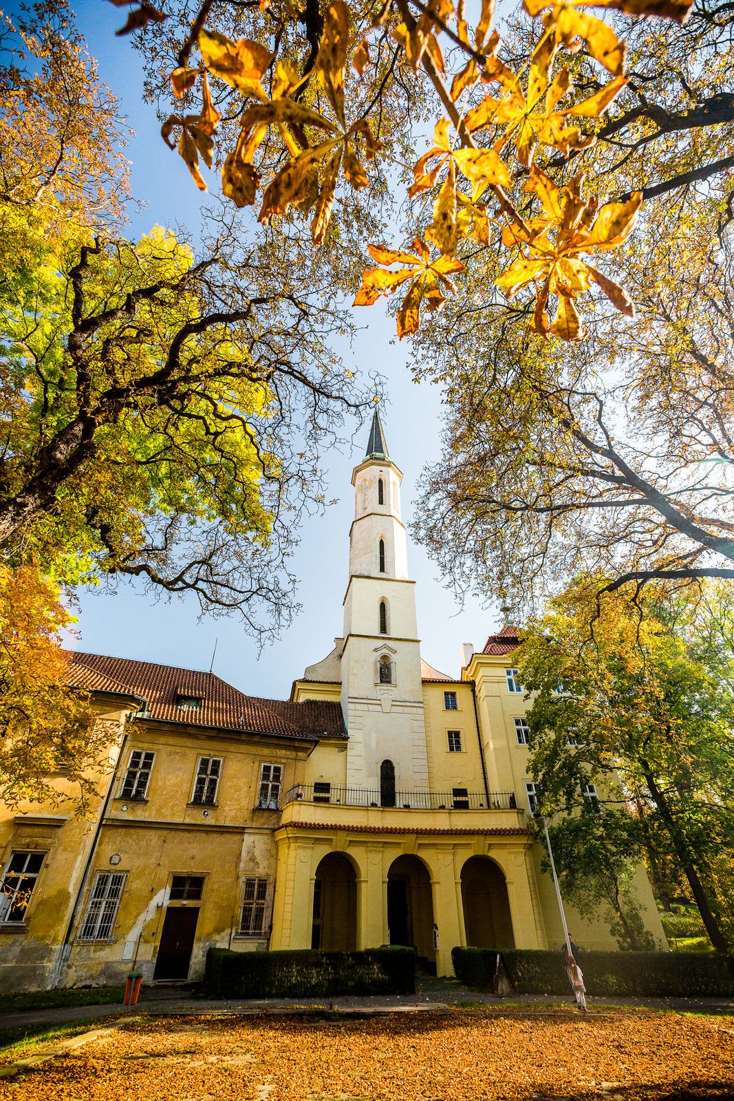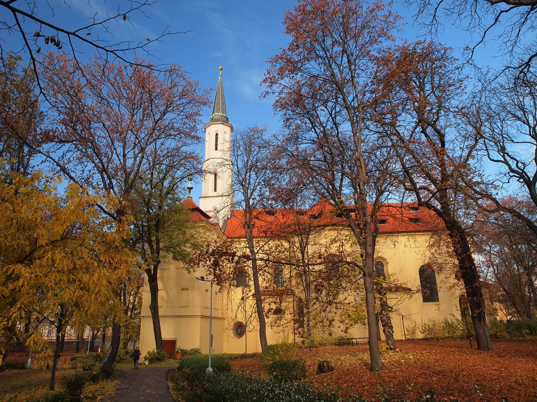 Костел был основан в 1355 г. Карлом IV как часть монастыря августинианок. Нынешний вид храма относится к его реконструкции в 1737-41 гг. в стиле барокко, однако от первоначального строения осталась высокая восьмиугольная башня, прозванная Пражским минаретом. Храм св. Екатерины Александрийской находится в ареале Всеобщей факультетской больницы, а управляет им Православная церковь.