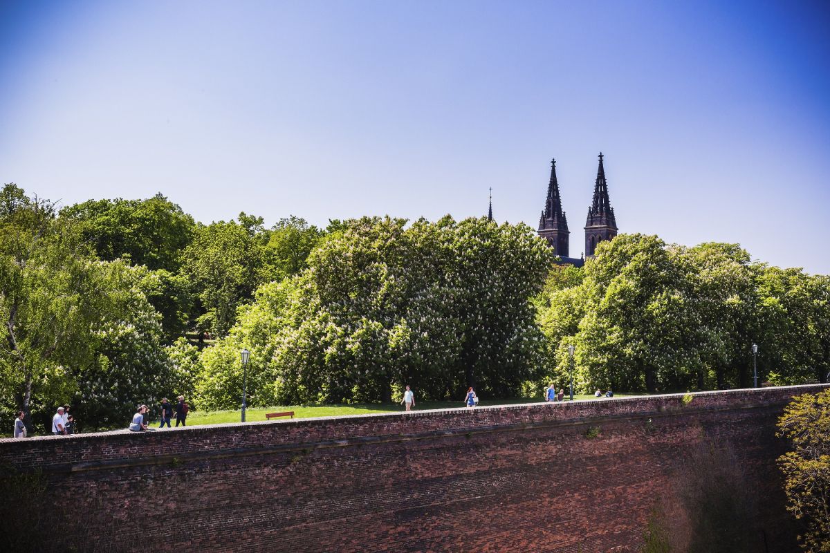 В древние времена на Вышеграде деревья не росли, только за его пределами он был окружен лесами. После гуситских войн здесь возникали виноградники, сады и поля. XVIII век и первая половина XIX века какие-либо зеленые насаждения на Вышеград не принесли. Первое упоминание о посаженных деревьях относится только к 1841 году, когда была посажена аллея акаций при дороге на Табор, которая в настоящее время соединяет все Вышеградские ворота. Зелень почтенного Вышеграда была посажена в основном в XIX веке, ее образовывают главным образом два первоначально частных парка - Карлаховы (Karlachovy) и Штульцовы (Štulcovy) сады, два частных сада - сад Нового пробства и сад Нового благочиния, парк Под крепостными стенами и Вышеградское кладбище.