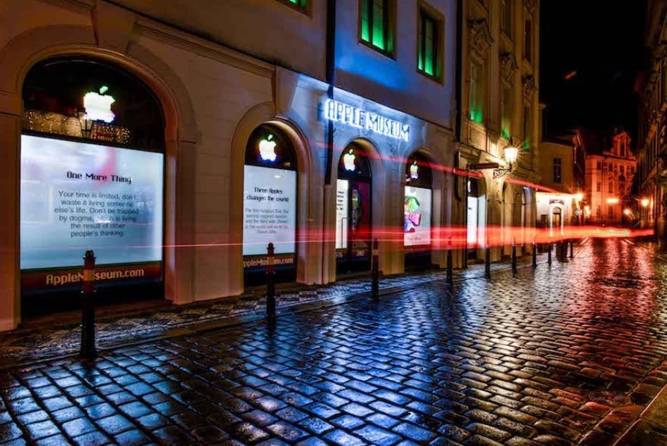 Музей является данью уважения гениальному визионеру нашего времени, который хотел и изменил мир, – Стиву Джобсу и его корпорации Apple. В пражском музее наглядно демонстрируется эволюция разных продуктовых линеек Apple,таких, как iPod, iPhone, iMac, PowerMac; здесь собрана самая обширная коллекция продуктов Apple за период 1976–2012 гг. В частности, именно в Праге поклонники «яблочной» марки смогут увидеть первый Macintosh или созданный в начале 80-х компьютер Apple Lisa. Помимо техники, в музее представлены личные вещи Стива Джобса (его куртка, визитка, школьный дневник и др.)
