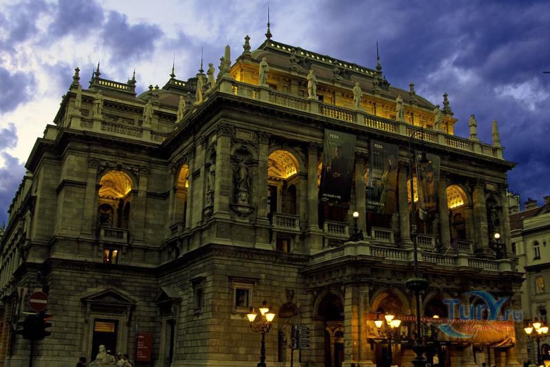 Венгерский государственный оперный театр, открытый в 1884 году, является крупнейшим оперным театром в Венгрии. Театр является также основной сценой и для Венгерского национального балета. Здание театра, построенное в стиле неоренессанс было спроектировано архитектором Миклошем Иблем в период между 1875 и 1884 годами. Строительство было профинансировано правительством, а также Австро-Венгерским императором Францем-Иосифом. Здание театра, ранее носившее название Венгерский королевский оперный театр, богато украшено выполненными в стиле барокко орнаментами. Оперный театр является шедевром венгерской архитектуры. Зрительный зал, вмещающий 1261 зрителя, выполнен в традиционной для театров форме подковы. По своей вместимости и размерам театр не вошел в число крупнейших, но по качеству акустики считается одним из лучших театров оперы в мире. По своим акустическим возможностям сцена зала занимает третье в мире место, после «Ла Скала» и «Парижского оперного театра». Интерьер театра декорирован скульптурами и картинами ведущих деятелей искусства периода 19 века. Особый интерес представляет настенная живопись работы Берталана Секея, Мора Тана и Кароя Лотца, расположенная вдоль лестниц внутри здания и в зрительном зале. Экстерьер театра украшают статуи Ференца Листа – самого известного композитора Венгрии, и Ференца Эркеля - автора венгерского национального гимна. За время своего существования театр повидал большое количество известных музыкантов. Среди них были: Густав Малер, Отто Клемперер, Янош Ференчик, Бела Барток и Джакомо Пуччини, дважды ставивший свои оперы на сцене театра. При проектировании и строительстве театра были использовано новаторское для того времени оборудование. Именно здесь впервые было установлено гидравлическое оборудование, использовавшееся для подъема сцены. Во время Второй мировой войны театр практически не пострадал. В 1945 году были возобновлены оперные постановки. Спустя еще пять лет зал был расширен. В 1979 году театр был закрыт на капитальный ремонт по причине аварийности здания. Торжественное открытие Венгерского государственного оперного театра состоялось ровно через сто лет после первой премьеры, поставленной на сцене Венгерского королевского оперного театра. При посещении Венгерского государственного оперного театра стоит учесть то, что в театре гардероб платный (за исключением гардеробов для балконов), оплата незначительная, но только за наличный расчет. Антракты больше, чем сами представления. В перерывах сервируется буфет, где разливают токайское вино по бокалам, продают бутерброды. В антракте можно выйти с бокалом вина на террасу на верхнем этаже, которая открывает великолепный вид проспект Андраши. Билеты в оперу можно приобрести через интернет, либо в кассах театра. О приобретении билетов, стоит позаботиться заранее, так как цены – достаточно демократичны. Билеты на места в первом ряду на двоих обойдутся не более 100$. Так что свободных мест на представлениях не бывает. Помните, что в Государственной Венгерской опере действует дресс-код. Дамы должны быть в элегантных вечерних платьях (драгоценные украшения приветствуются), мужчины - во фраках, ну или хотя бы в классических костюмах. Кроме обычных театральных постановок, ежедневно в театре проходят экскурсии на различных, в том чис