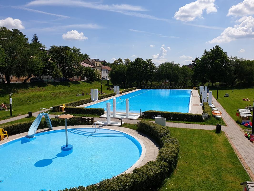 В летнее время здесь открыты бассейны: большой (42,5 x 16,5 м) и детский с тобоганом и фонтаном.