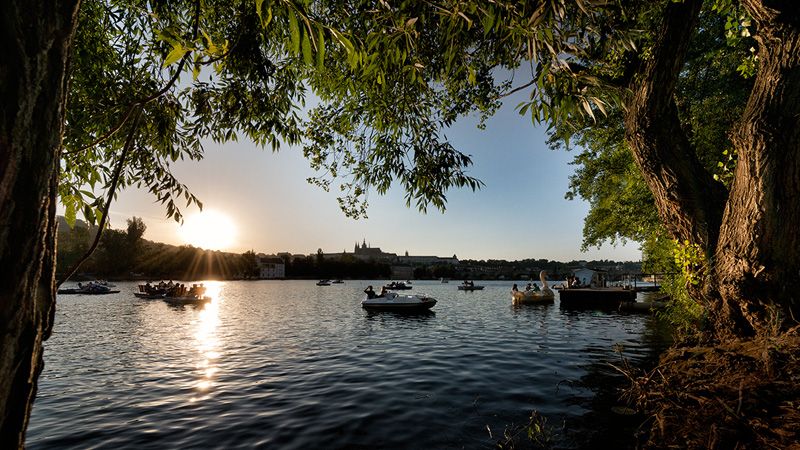 На лёгком водном велосипеде или в речной шаланде будет и принимая солнечные ванны, созерцать красоты Карлова моста и Пражского Града.