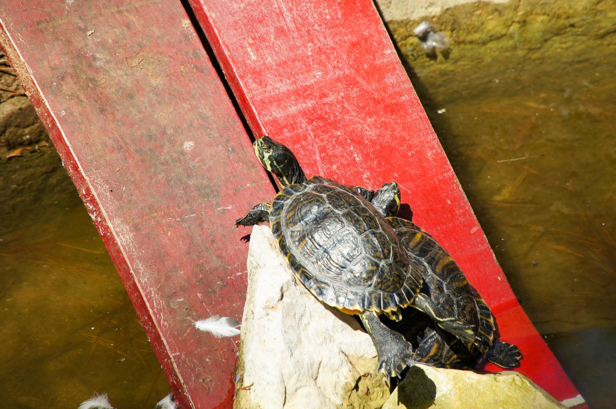 В парке есть несколько водоемов, где обитают утки, черепахи и другие водные животные. По всей территории свободно разгуливают павлины, куры и петухи, придавая месту особый колорит. Для детей оборудована современная игровая площадка, а для любителей спорта — зоны для занятий физической активностью.