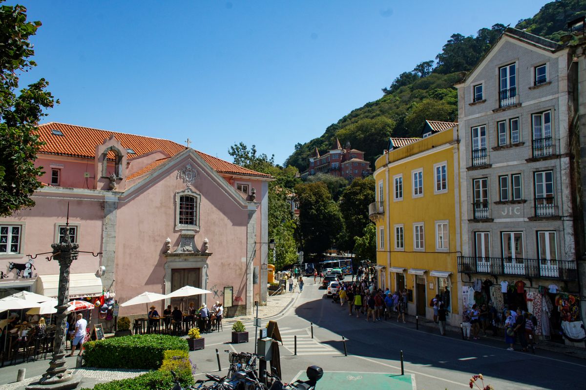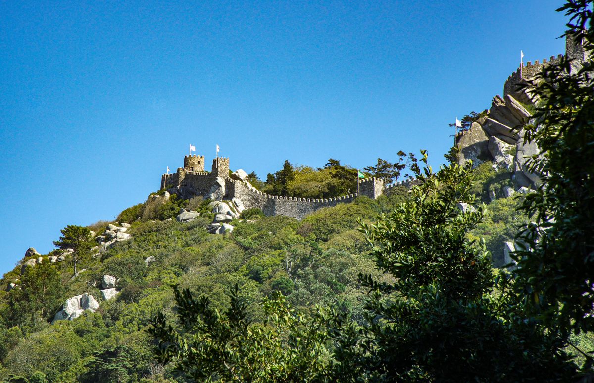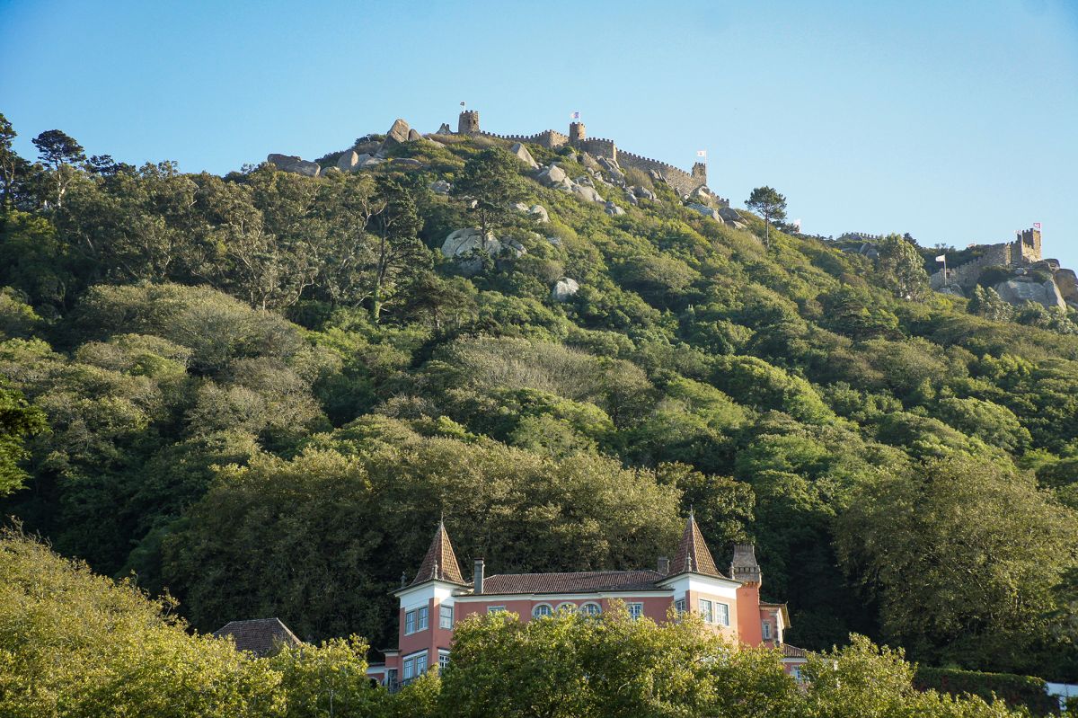 Очарование Синтры, описанное лордом Байроном, заключается не только в его зданиях, но и в прогулках и дорожках. Одна из лучших прогулок ведет мимо церкви Санта-Мария к разрушенным валам мавританского замка, откуда открывается потрясающий вид. За замком, в девяноста минутах крутой прогулки от города, находится нижний вход в огромный парк Пена. В верхней части парка возвышается сказочный дворец Паласио-де-Пена, дикая фантазия 1840 года о куполах, башнях и разводном мосту, который не поднимается. Интерьер был сохранен в том виде, в котором он был оставлен королевской семьей, бежавшей из Португалии в 1910 году.