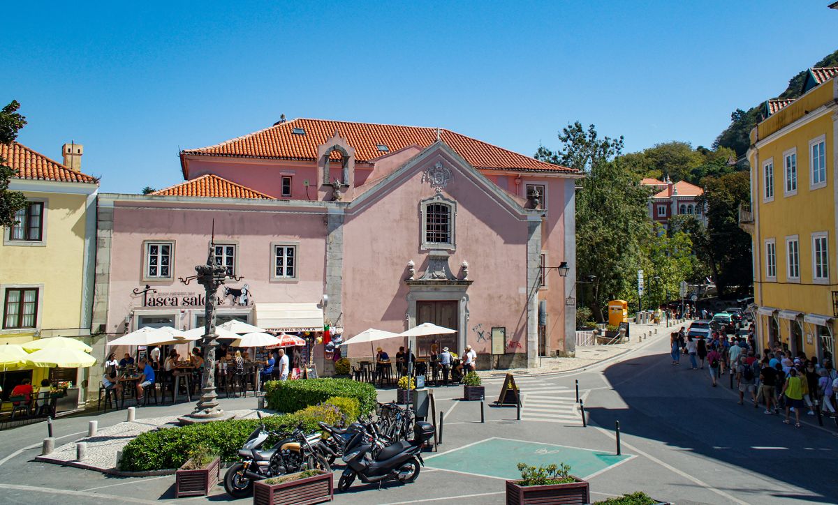 Необычайный субтропический микроклимат Синтры обеспечивает обилие прохладных лиственных лесов, которые в жаркие летние месяцы привлекали сюда мавританских лордов и королей Португалии из Лиссабона. Планировка Синтры - слияния трех деревень - может сбивать с толку, но выдающийся Palacio Nacional, расположенный примерно в двадцати минутах ходьбы от вокзала, является очевидной достопримечательностью. Дворец, вероятно, существовал при маврах, но его нынешняя форма возникла в результате реставрации, проведенной королем Жуаном I и его преемником королем Мануэлем в четырнадцатом и пятнадцатом веках. Его стиль представляет собой смесь готики и дополнений последнего короля Мануэлина. Ежечасные экскурсии - это своего рода испытание, если только вы не пойдете раньше, чем прибудут группы, но часовня и прилегающая к ней комната (ее пол изношен непрерывными шагами полусумасшедшего Афонсу VI, который был заключен здесь на шесть лет своим братом Педро I) стоит посмотреть.