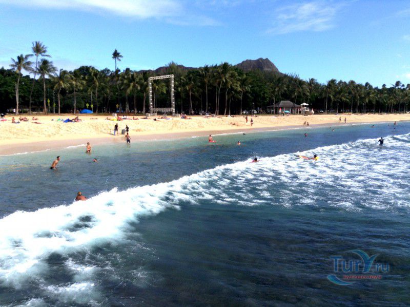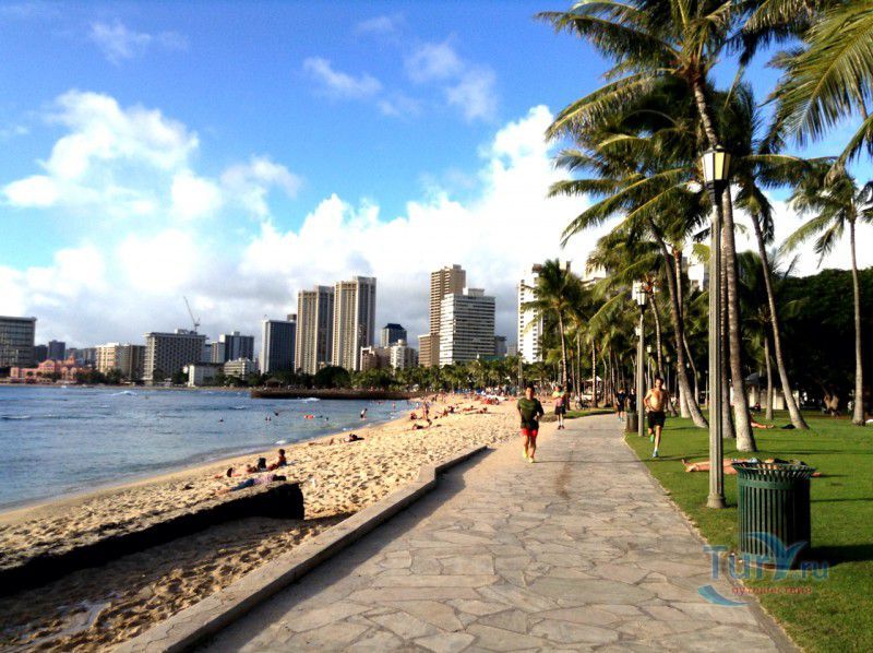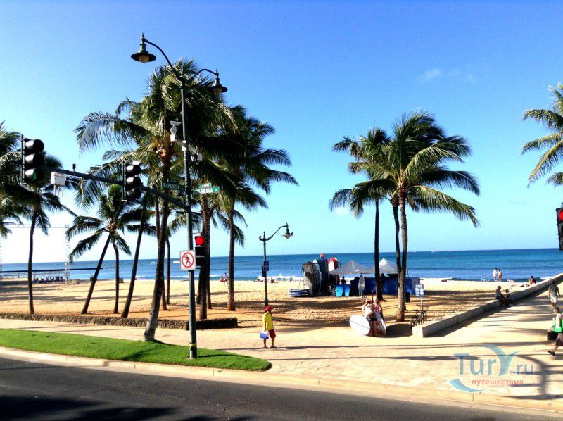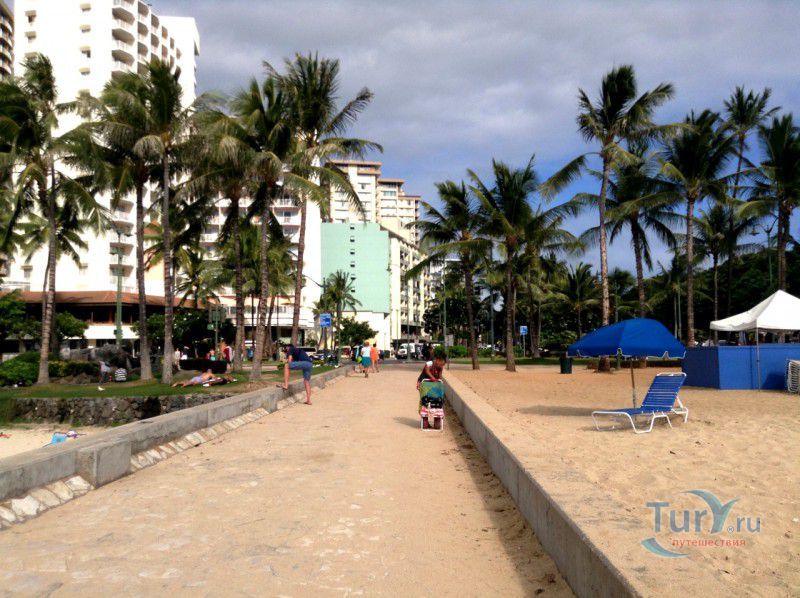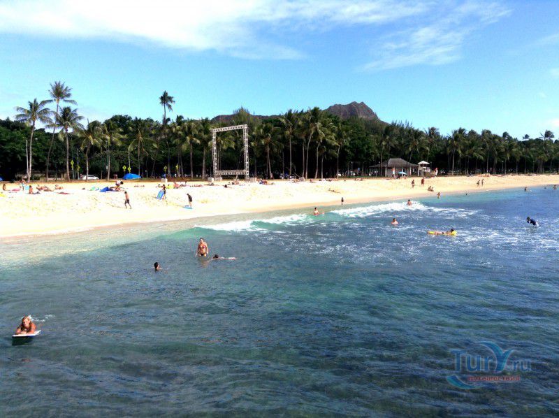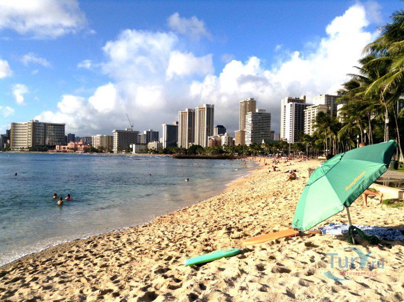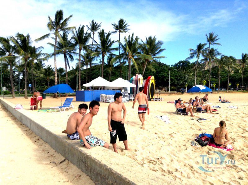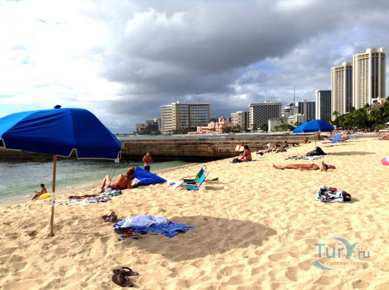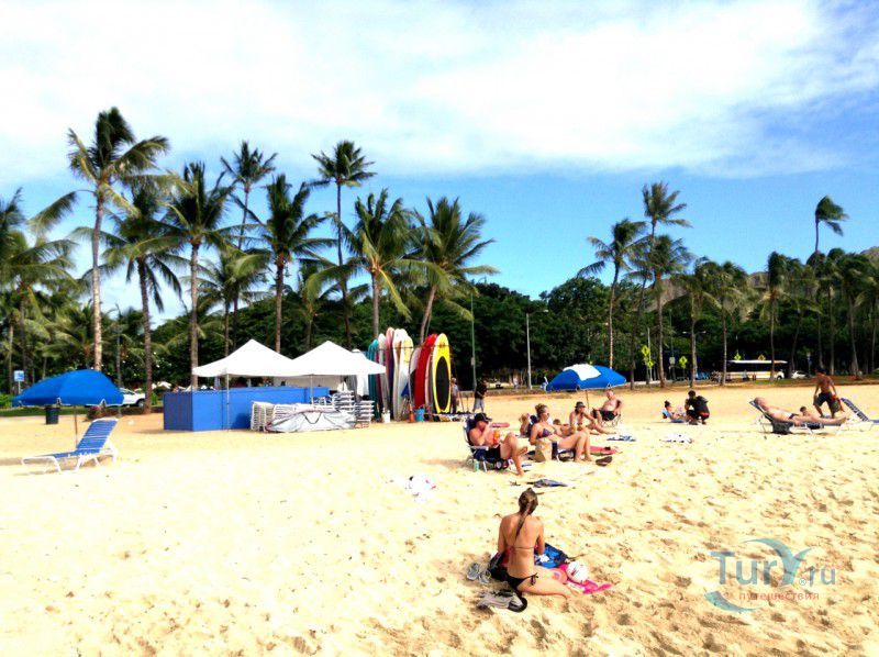 Пляжи Waikiki Beaches с запада на восток: 1) Kahanamoku Beach / Duke Kahanamoku Beach, 2) Fort Derussy Beach, 3) Gray’s Beach / Halekulani Beach, 4) Royal Moana Beach / Royal Hawaiian Beach, 5) Kuhio Beach / Prince Kuhio Beach, 6) Kapiolani Beach, 7) Queens Beach, 8) Kaimana Beach / Sans Souci Beach, 9) Outrigger Canoe Club Beach.