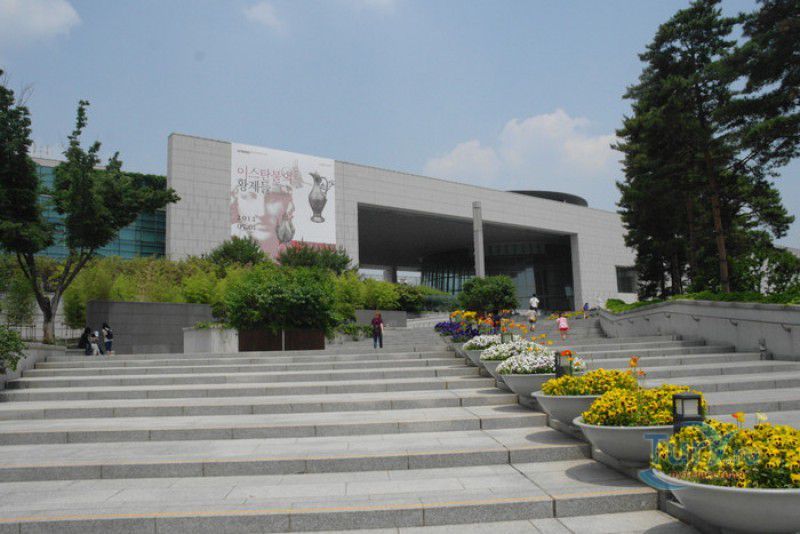 Национальный Музей Кореи - крупнейший исторический и художественный музей Южной Кореи, расположен в центре Сеула, на территории Семейного парка Ёнсан. Музей создан в 1945 году, ядром его коллекции стали собрания ценностей Музея императорского дворца, основанного в 1909 году королём Сунджоном, и Японского правительственного музея, существовавшего в период японской оккупации Кореи. Во время Корейской войны 1950-1953 годов большая часть музейной коллекции была эвакуирована в Пусан, после возвращения в Сеул музей несколько раз менял своё местоположение, пока в 2005 году не переехал в специально построенное для него современное здание. Коллекция музея насчитывает более 150000 экспонатов, постоянная экспозиция занимает 3 этажа и состоит из 6 тематических галерей. На первом этаже расположена галерея доисторической и античной истории, в её 11 выставочных залах представлены 7525 экспонатов, начиная с доисторических времён до эпохи Южного и Северного королевств. Здесь же находится галерея средневековья и современности, состоящая из 9 выставочных залов, посвящённых культурному наследию династий Горье и Чосон (всего 1800 экспонатов). Второй этаж занимают галерея пожертвований, состоящая из 11 выставочных залов с 1400 экспонатами, переданными в дар музею коллекционерами, и галерея изобразительного искусства, разделённая на залы живописи, каллиграфии, буддистской живописи, деревянных и лакированных изделий. На третьем этаже расположены галерея азиатской культуры, экспозиция которой знакомит с культурой Китая, Японии, Индонезии и стран Центральной Азии, а также галерея скульптуры и ремёсел - в 7 залах размещены 710 реликвий. Среди экспонатов музея несколько Национальных сокровищ Кореи - золотая корона из гробницы Небесного коня в Кёнджу, статуя Задумчивый Бодхисаттва, датируемая VII веком, фарфоровая курильница XII века, десятиэтажная пагода храма Кёнсхонса, построенная в 1348 году. На открытой выставочной площади перед музеем размещены каменные пагоды, столбы, фонари, скульптуры, памятники и надгробные плиты. В музее есть библиотека, Детский музей, театр, концертный зал, лекторий, сувенирный магазин, ресторан и кафе, проводятся временные и тематические выставки, семинары, разработаны образовательные программы для детей и взрослых. Национальный музей Кореи входит в первую двадцатку самых посещаемых художественных музеев мира, ежегодно его посещают около трёх миллионов человек.