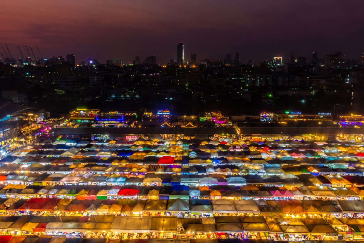 Ночной железнодорожный рынок Ратчада в Бангкоке
