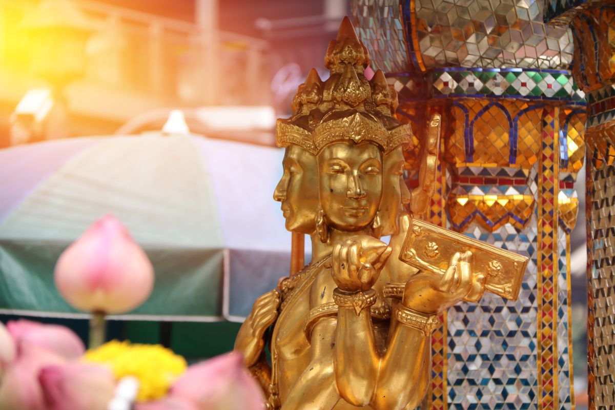 Алтарь Эраван - это индуистский храм, расположенный перед отелем Grand Hyatt Erawan на перекрестке Ratchaprasong на Ratchadamri Road в суб-районе Lumphini, Pathum Wan District, Бангкок. И тайцы, и иностранцы любят посещать это место и поклоняться этому знаменитому святому объекту. Многие групповые туры из многих стран организуются специально, чтобы отдать дань уважения Пхра Пхром. История этого священного объекта началась в 1951 году, когда генерал полиции Пхао Сриянонд назначил открытие отеля Erawan на перекрестке Ратчапрасонг для приема иностранных гостей. Говорят, что в первый период существования было много неудач. Позже, когда в конце 1956 года строительство было почти завершено, исполнительный директор Syndicate of Thai Hotels & Tourists Enterprises Limited связался с контр-адмиралом Луанг Сувичаном Паэтом, главой военно-морского флота, врачом и мастером сидячей медитации, чтобы выбрать благоприятный день и время для открытия отеля. Однако контр-адмирал Луанг Сувичан Паэт предложил надлежащее приношение. Чтобы решить эту проблему, отель должен был поклоняться Пхра Пхром, чтобы устранить препятствия, и должен был построить храм Эраван и дом духов сразу после того, как здание было полностью построено. В результате был построен храм, спроектированный г-ном Рави Чомсери и М.Л. Поом Малакул. Статуя Пхра Пхрома была спроектирована и отлита из позолоченной штукатурки г-ном Джитром Пимковитом, мастером-ремесленником из Департамента изящных искусств. Затем 9 ноября 1956 года перед отелем Эраван был установлен храм Пхра Пхром. Святилище Эраван в отеле Эраван стало первым крупнейшим храмом Пхра Пхром. Согласно индуистским верованиям, Пхра Пхром - бог строительства. У него 4 лица, каждое из которых символизирует 4 направления - север, юг, восток и запад; поэтому он может видеть и защищать все как в человеческом мире, так и на небесах. Он может избавить от трудностей и препятствий и с уважением ободрить прихожан на удачу и успех. В настоящее время святилище Эраван в отеле Эраван находится под наблюдением «Фонда Тан Тао Махапром». Туристы и желающие могут ежедневно посещать священный храм Эраван и поклоняться ему в отеле Эраван бесплатно.
