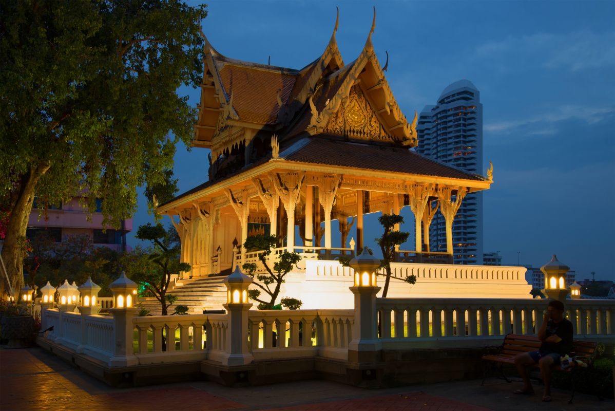Парк Сантичайпракарн - небольшой городской парк площадью около 8 рай (около 3 акров) в Бангкоке, расположенный на конечной фазе дороги Пхра Атит, субрайон Чана Сонгкрам, район Пхра Накхон, восточный берег реки Чаупхрая в устье Клонг Банг Лампу (Банг). Lamphu Canal) в районе Банг Лампу. Напротив парка Рамы VIII на стороне Тонбури. Парк был построен в честь 72-й годовщины со дня рождения короля Пумипона Адульядета (Рамы IX) 5 декабря 1999 года. Царь дал свое название, означающее «Знаки Победы Мира». Впоследствии правительство предоставило столичной администрации Бангкока (BMA) действовать 21 февраля 2000 года. В парке находятся тронный зал Сантичайпракарн и форт Пхра Сумен, построенные во время правления короля Пхуттайотфа Чулалок (Рама I) с начала эры Раттанакосин, и последние мангровые яблоки района, в честь которых названа область Банг Лампу (мангровое яблоко, называется на тайском языке Лампу). Парк Сантичайпракарн - отличное место для посещения и осмотра достопримечательностей вдоль реки. Его часто используют как место для просмотра каждый раз Королевской процессии баржи.