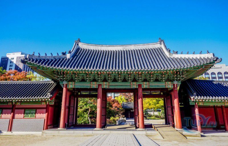 Дворцовый Комплекс Чхандоккун (в переводе с корейского - Дворец Процветающей добродетели) расположен в северной части Сеула, в районе Чонно-гу. Королевский дворец Чхандоккун - один из "Пяти великих дворцов", возведенных в Сеуле во время правления династии Чосон, и самый красивый из них. Дворец построен в 1405-1412 годах, в 1592 году, во время японского вторжения, был сожжён захватчиками, восстановлен в 1610 году королём Сончжо и на протяжении последующих 250 лет (периода, когда дворец Кёнбоккун находился в разрушенном состоянии) служил в качестве главной королевской резиденции династии Чосон. Здесь жил до своей смерти в 1926 году последний монарх Кореи, император Сунджон. При возведении Дворца Процветающей добродетели корейским зодчим удалось гармонично "вписать" дворцовые здания, павильоны, беседки, искусственные пруды и ручьи в ландшафт местности - большого природного парка. До наших дней в первозданном виде сохранились 13 дворцовых зданий и 28 павильонов, расположенных на территории сада Хувон. Главный вход во дворец - ворота Тонхвамун были построены в 1412 году и являются старейшими воротами, сохранившими свой первоначальный облик, среди всех королевских дворцов Сеула. На воротах есть надпись, которая гласит: "Любить и управлять народом великодушным сердцем". Главное здание дворцового комплекса - тронный зал Инджонджон, именно в нём проходили основные королевские церемонии, приёмы иностранных послов, празднования наиболее значимых событий в жизни страны и королевской семьи. В этом зале состоялись коронации восьми королей династии Чосон. Королевская резиденция Наксонджэ была построена в XIX веке королём Хончжоном, в ней также жили король Коджон (он же первый император Корейской Империи) и его сын Сунджон - 27-й король династии Чосон, ставший последним корейским императором. К наиболее значимым дворцовым сооружениям также относятся резиденция Йонгёндан (здесь проходили концерты традиционной корейской музыки и театральные представления), личные королевские покои - зал Хведжондан, королевская официальная палата - зал Сонджонджон, официальная резиденция королевы - зал Тэджоджон, королевский архив и библиотека - павильон Чухамну. В северной части дворца Чхандоккун расположен сад Хувон (современное название - Пивон), что в переводе с корейского означает "Сад естественной красоты". Его также называли Запретным садом, так как гулять и отдыхать здесь имели право только члены королевской семьи, даже самым высокопоставленным чиновникам входить в этот сад было строжайше запрещено. Сад Хувон - шедевр ландшафтного дизайна, в его центре находится большой пруд, вокруг него и вдоль аллей построены павильоны и беседки, разбиты клумбы, высажены около 56 000 деревьев и других растений, в числе которых - белый дуб, дзельква, можжевельник, сосна, орех, тис, граб, клён, каштан и другие. Ещё одна достопримечательность сада - Нефритовый ручей (Оннючхон) - рукотворный U-образный канал с небольшим водопадом и построенными вокруг него пятью павильонами. В 1997 году дворцовый комплекс Чхандоккун был внесен в список Всемирного наследия ЮНЕСКО как выдающийся образец Дальневосточной дворцовой архитектуры и ландшафтного дизайна.