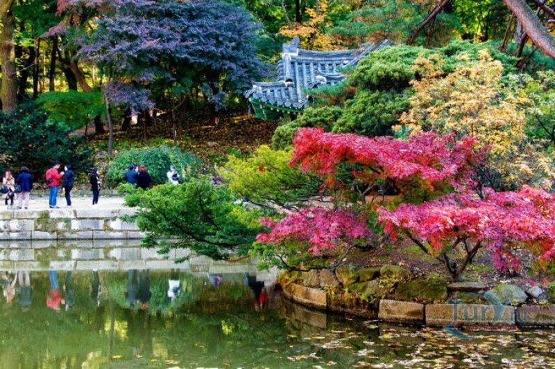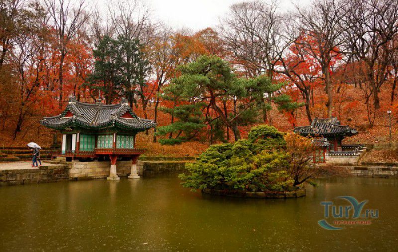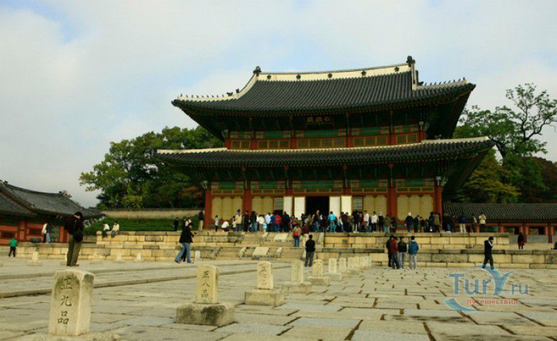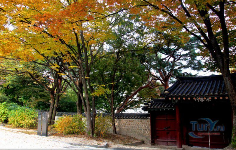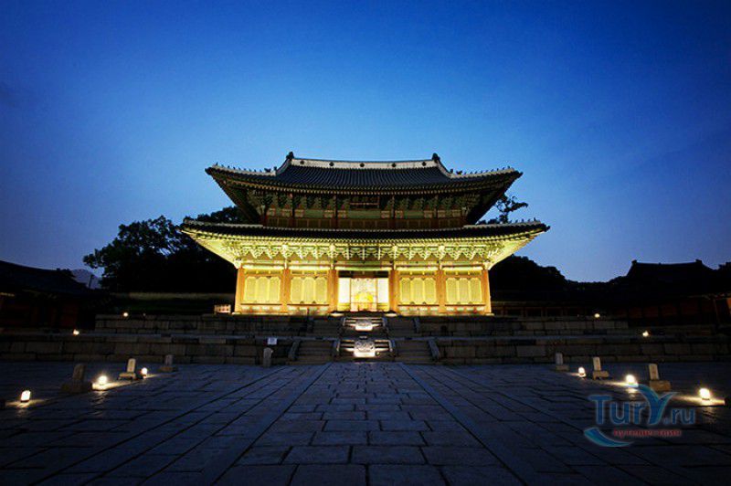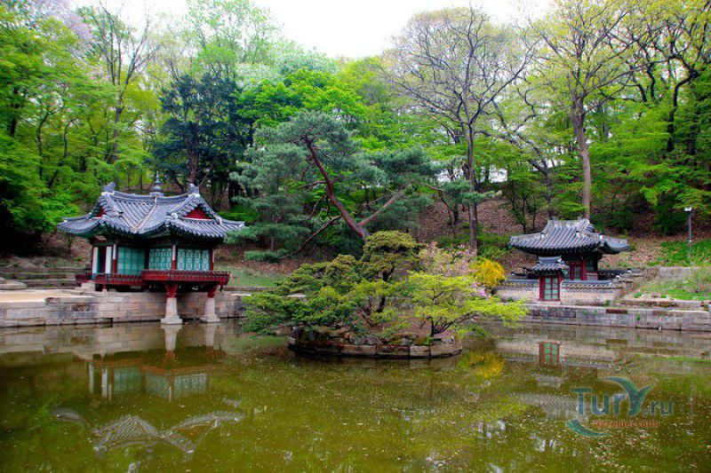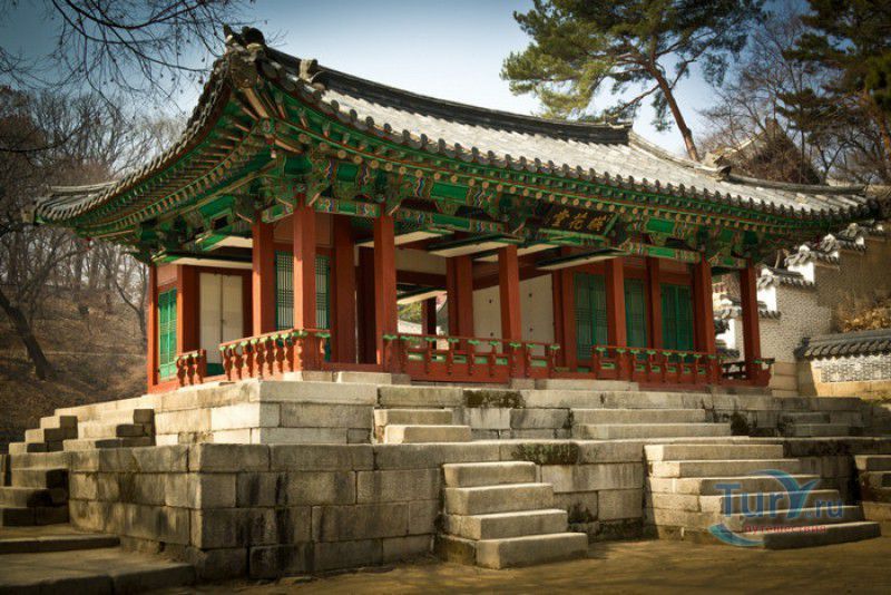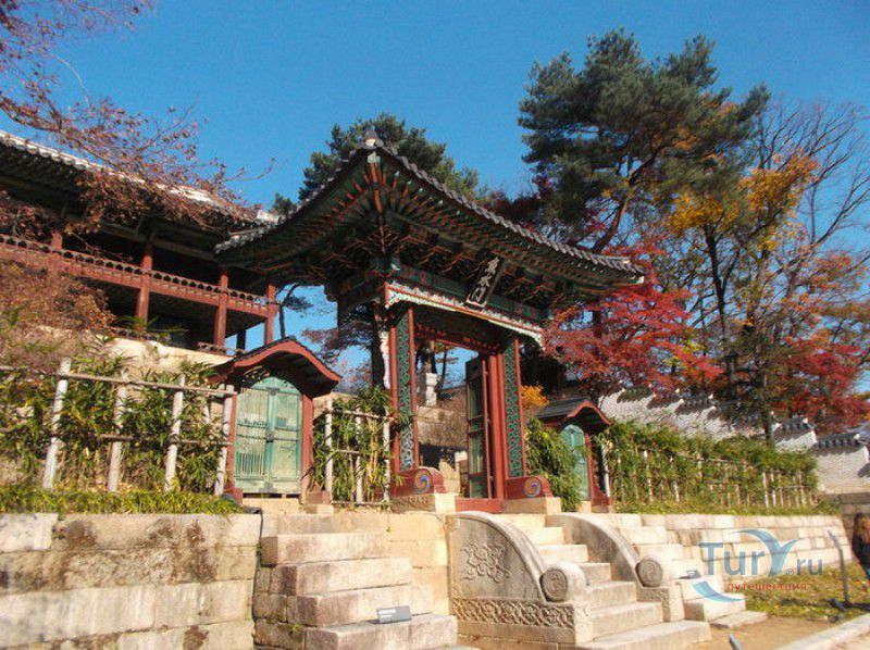 Дворцовый Комплекс Чхандоккун (в переводе с корейского - Дворец Процветающей добродетели) расположен в северной части Сеула, в районе Чонно-гу. Королевский дворец Чхандоккун - один из "Пяти великих дворцов", возведенных в Сеуле во время правления династии Чосон, и самый красивый из них. Дворец построен в 1405-1412 годах, в 1592 году, во время японского вторжения, был сожжён захватчиками, восстановлен в 1610 году королём Сончжо и на протяжении последующих 250 лет (периода, когда дворец Кёнбоккун находился в разрушенном состоянии) служил в качестве главной королевской резиденции династии Чосон. Здесь жил до своей смерти в 1926 году последний монарх Кореи, император Сунджон. При возведении Дворца Процветающей добродетели корейским зодчим удалось гармонично "вписать" дворцовые здания, павильоны, беседки, искусственные пруды и ручьи в ландшафт местности - большого природного парка. До наших дней в первозданном виде сохранились 13 дворцовых зданий и 28 павильонов, расположенных на территории сада Хувон. Главный вход во дворец - ворота Тонхвамун были построены в 1412 году и являются старейшими воротами, сохранившими свой первоначальный облик, среди всех королевских дворцов Сеула. На воротах есть надпись, которая гласит: "Любить и управлять народом великодушным сердцем". Главное здание дворцового комплекса - тронный зал Инджонджон, именно в нём проходили основные королевские церемонии, приёмы иностранных послов, празднования наиболее значимых событий в жизни страны и королевской семьи. В этом зале состоялись коронации восьми королей династии Чосон. Королевская резиденция Наксонджэ была построена в XIX веке королём Хончжоном, в ней также жили король Коджон (он же первый император Корейской Империи) и его сын Сунджон - 27-й король династии Чосон, ставший последним корейским императором. К наиболее значимым дворцовым сооружениям также относятся резиденция Йонгёндан (здесь проходили концерты традиционной корейской музыки и театральные представления), личные королевские покои - зал Хведжондан, королевская официальная палата - зал Сонджонджон, официальная резиденция королевы - зал Тэджоджон, королевский архив и библиотека - павильон Чухамну. В северной части дворца Чхандоккун расположен сад Хувон (современное название - Пивон), что в переводе с корейского означает "Сад естественной красоты". Его также называли Запретным садом, так как гулять и отдыхать здесь имели право только члены королевской семьи, даже самым высокопоставленным чиновникам входить в этот сад было строжайше запрещено. Сад Хувон - шедевр ландшафтного дизайна, в его центре находится большой пруд, вокруг него и вдоль аллей построены павильоны и беседки, разбиты клумбы, высажены около 56 000 деревьев и других растений, в числе которых - белый дуб, дзельква, можжевельник, сосна, орех, тис, граб, клён, каштан и другие. Ещё одна достопримечательность сада - Нефритовый ручей (Оннючхон) - рукотворный U-образный канал с небольшим водопадом и построенными вокруг него пятью павильонами. В 1997 году дворцовый комплекс Чхандоккун был внесен в список Всемирного наследия ЮНЕСКО как выдающийся образец Дальневосточной дворцовой архитектуры и ландшафтного дизайна.
