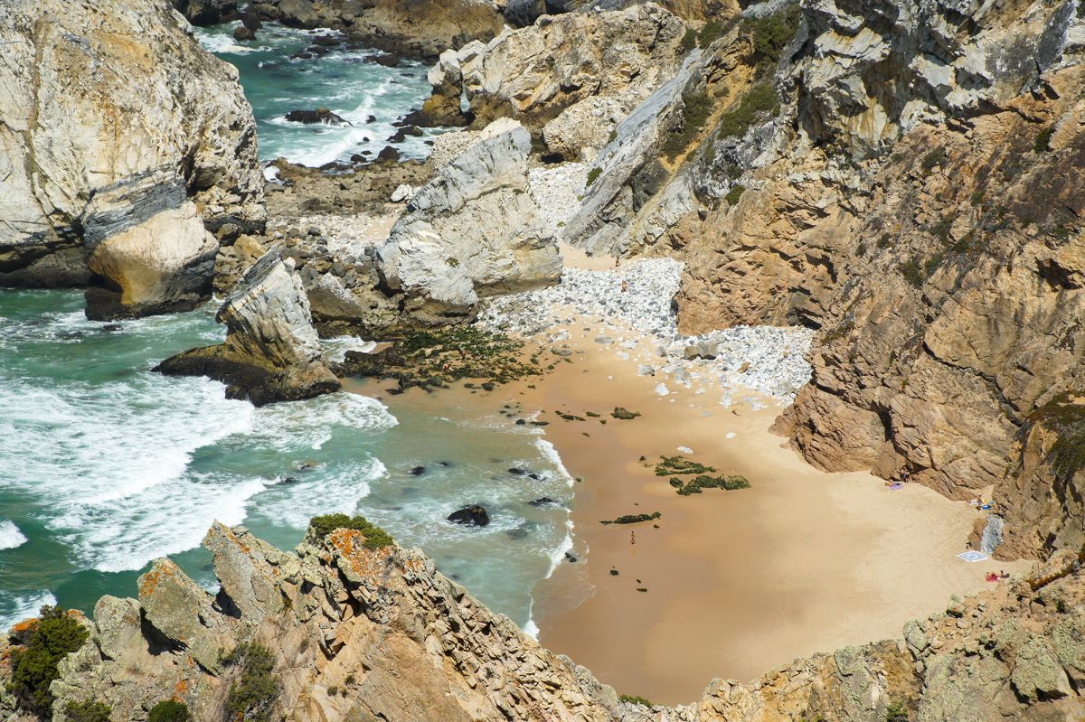 Прайя-да-Ароэйра находится к северу от Кабо-да-Рока. Мелкий песок окружен скалами. Рядом с основанием обрыва находится галька, а по песку - раскатанная галька.