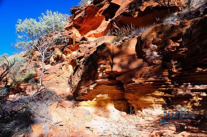 Сложенные песчаником отвесные стены каньона, формировавшиеся ветровой эрозией миллионы лет, достигают 200 метров в высоту. Тем самым они служат защитой от сухой пустыни густым пальмовым лесам, папоротникам и саговникам, произрастающим внутри каньона, и предоставляют убежище местным животным. К слову сказать, в районе Королевского каньона насчитывается более 600 видов растений и животных, многие из которых являются эндемичными.