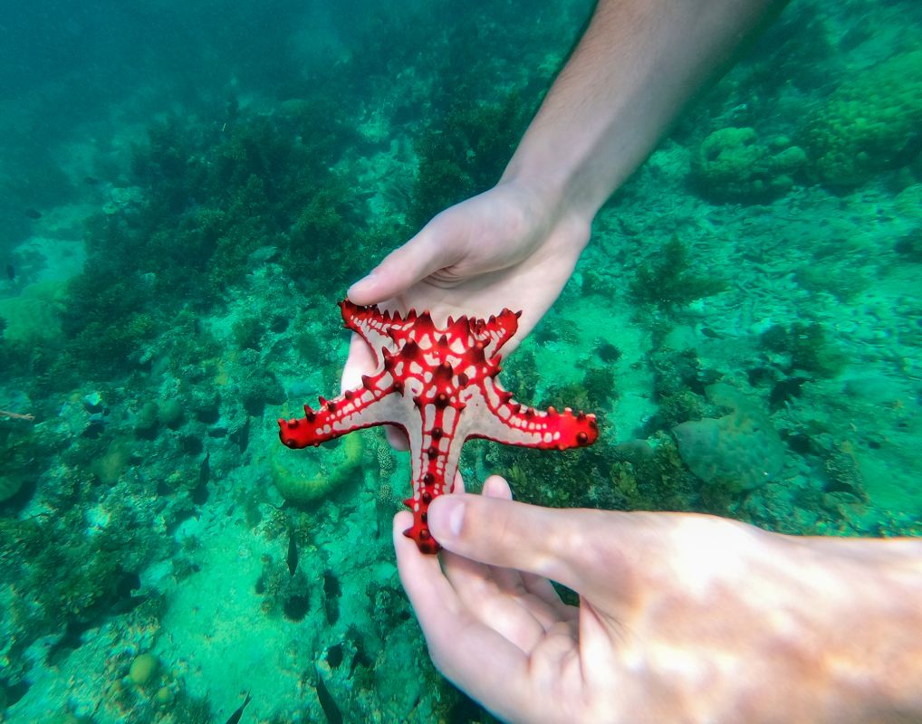 Погружаясь к рифу, можно увидеть разноцветные кораллы, стаи тропических рыб, морских черепах и даже дружелюбных дельфинов. Иногда здесь встречаются манты и рифовые акулы, что делает подводное приключение еще более захватывающим.