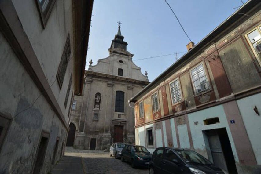 Римско-католическая церковь Святого Георгия с женским монастырем была построена в стиле барокко между 1701 и 1714 годами и являлась резиденцией монастыря в 1734 году. На фасаде церкви находится статуя основателя Общества Иисуса Святого Игнатия. В подвале находится склеп, где были похоронены представители знати после того, как они были убиты в битвах с турками с 1696 по 1716 год. Самая старая эпитафия на надгробии находится внутри церкви и посвящена барону Генриху Нехему, генералу и военачальнику, служившему в Петроварадинской крепости, где он умер в 1713 году. В этой эпитафии говорится, что Бог подарил ему вечный дом на небесах за его добродетели. В римско-католической церкви Святого Джурая также есть таблички, на которых говорится, что царь Франк Иосиф (1830-1916) посетил крепость, а регент Александр Караджорджевич (1888-1934) сделал то же самое в 1919 году.