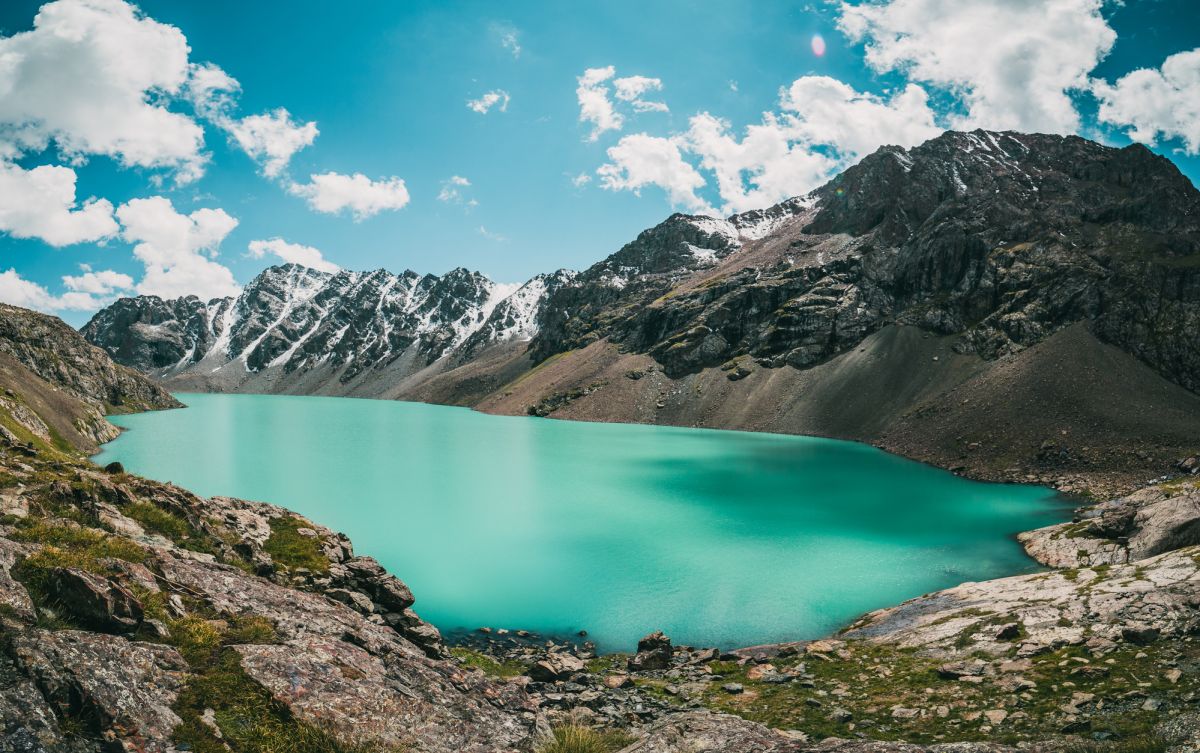 Озеро Ала-Куль расположено среди скалистых хребтов Терскей Ала-Тоо, на высоте 3532 м. Площадь ледникового озера составляет менее 1,5 км 2 , глубина достигает более 70 м. Это «пестрое озеро» меняет свой оттенок в зависимости от погоды.