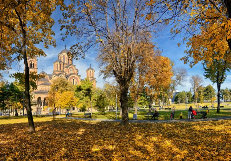 По самому периметру парка находится его центр - церковь Святого Марка, дизайн которой был вдохновлен средневековым монастырем Грачаница. В центре парка находится музыкальный фонтан и большая шахматная доска, предназначенная для пожилых людей.