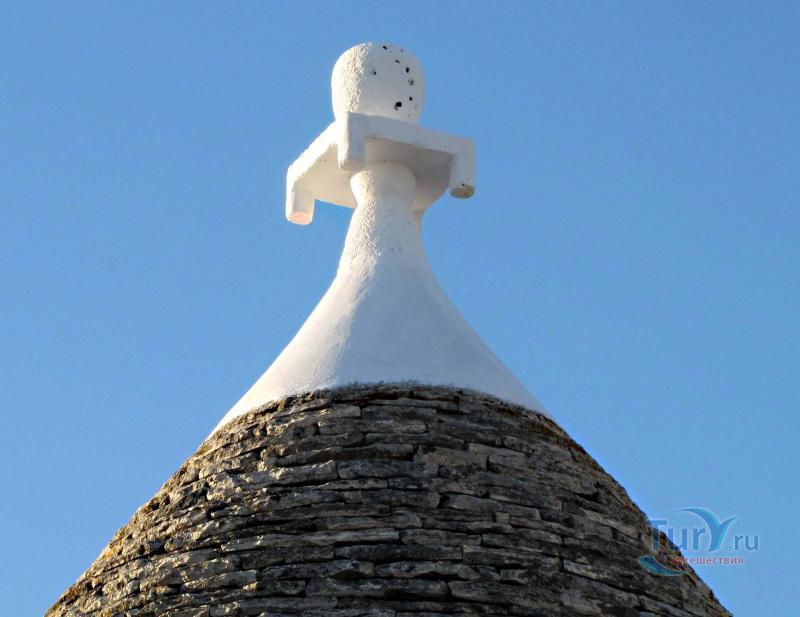 Оригинальные, похожие на сказочные домики, трулли располагаются в двух районах города: Айя-Пиккула и Монти. Название этих сказочных домиков произошло от слова "Трулло", что в переводе с латинского означает купол, то есть домики с куполом. Трулло представляет собой однокомнатную конструкцию с конической крышей, увенчанной каменным шпилем и разукрашенной рисунками, христианскими или языческими символами. Основная особенность таких построек заключается в том, что они возводились без использования цемента или каких-либо других скрепляющих растворов.
