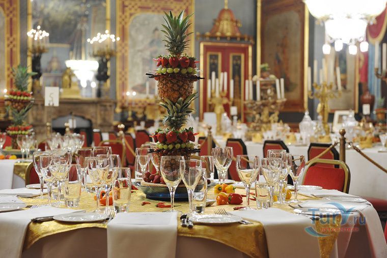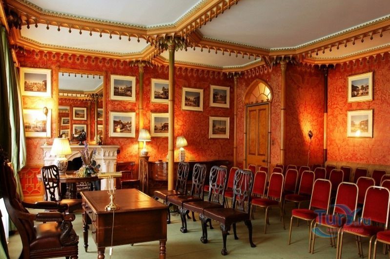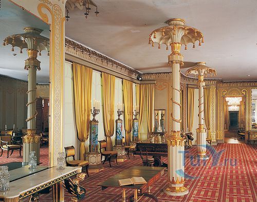 Внутреннее убранство выполнено в смешанном стиле из индийских и мавританских мотивов, типичных для колониального стиля времён регентства Георга. Минареты и резные порталы напоминают о путешествиях за три моря, а интерьеры в китайском стиле создают уют и комфорт. Этот фантастический дворец в центре современного Брайтона, построенный и отделанный под сильным влиянием китайской и индийской колониальной моды, поражает обилием восточных декоративных элементов, а интерьеры дворца являют собой самый экстравагантный образец стиля шинуазри с его оригинальной мебелью и яркими цветами.