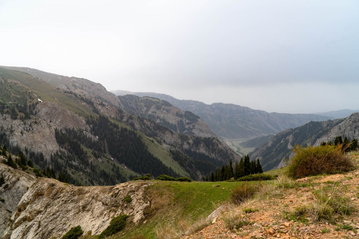 Дорога к перевалу постоянно уходит в серпантин, спуск достаточно крутой. С перевала открывается чудесный вид на ущелья, высокие горы с ледяными шапками, склоны, заросшие громадными елями. Здесь часто бывает туман, густой как молоко, так что почти ничего нельзя увидеть вокруг.