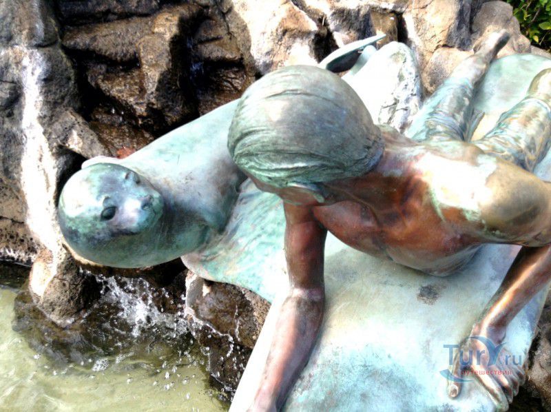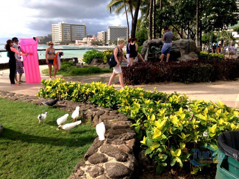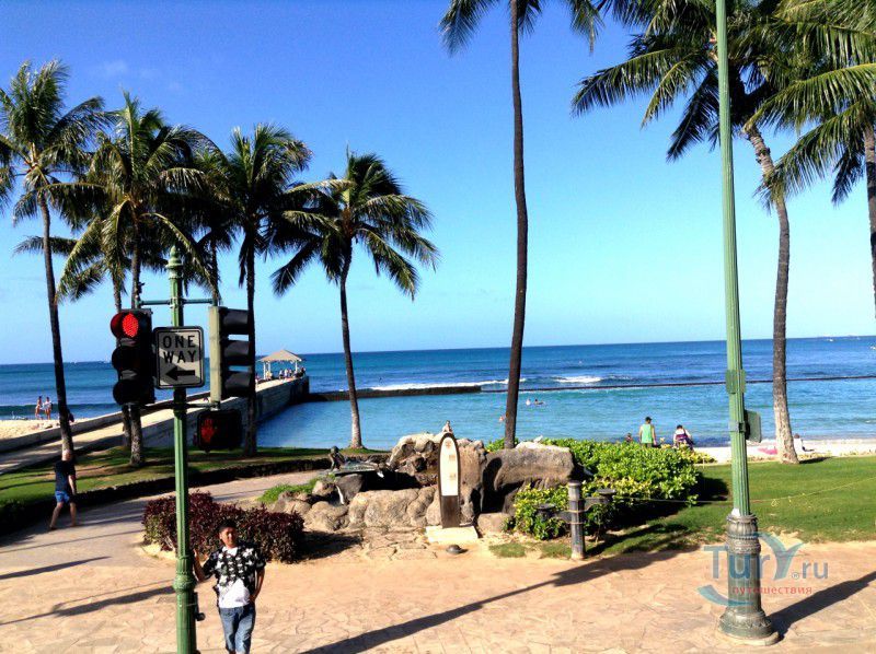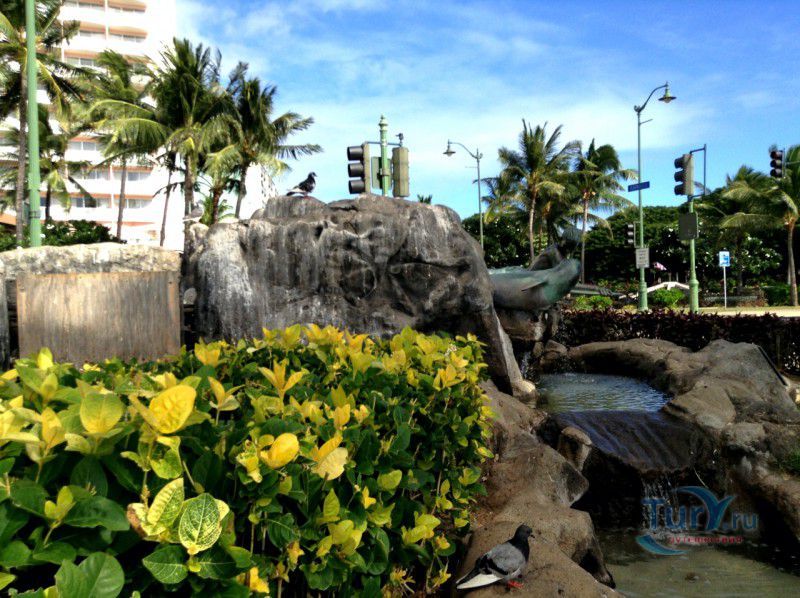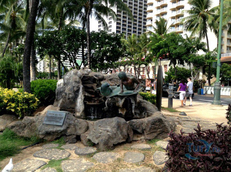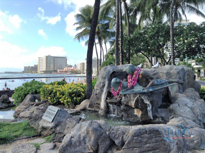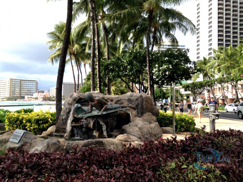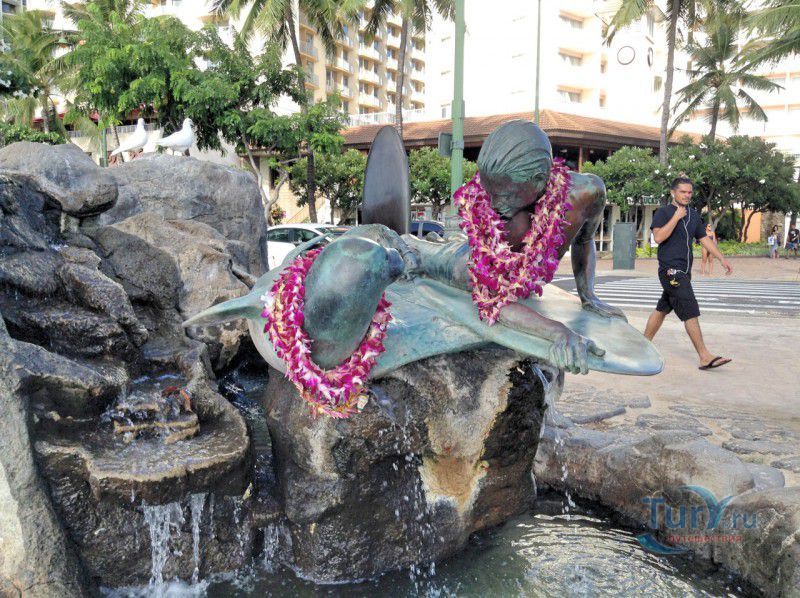 Скульптура Makua and Kila установлена прямо у пляжа Kuhio Beach в районе Вайкики - знаменитом районе Гонолулу на острове Оаху, на Гавайях.
