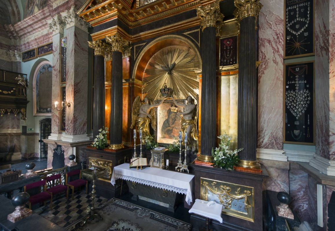 - Выполненный в стиле позднего барокко главный алтарь с барельефом, представляющим Посещение Праведной Елисаветы – одно из чудесных краковских резных произведений, выполненных на рубеже XVII и XVIII веков.