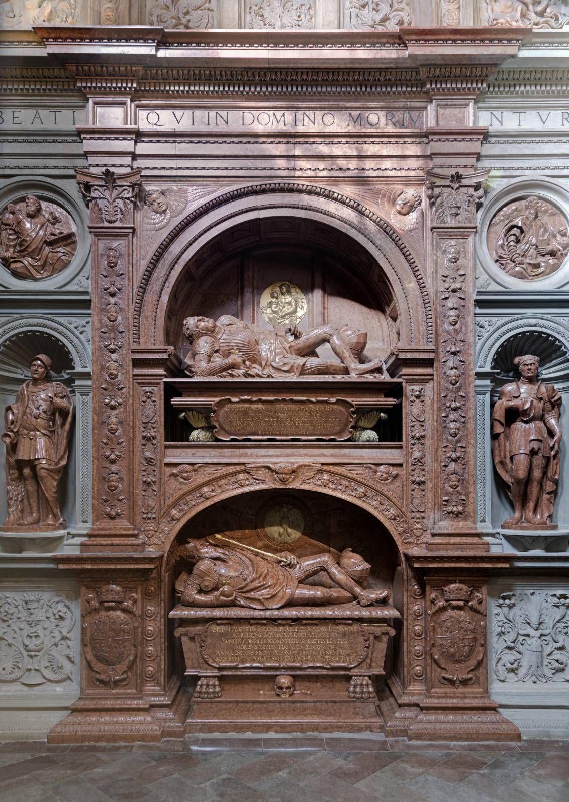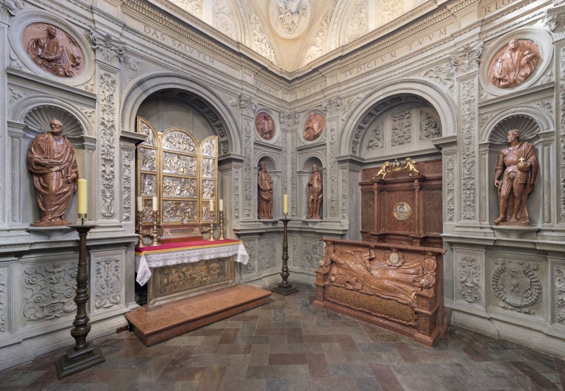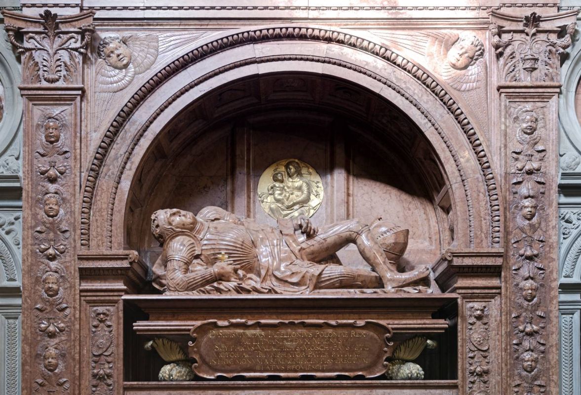 Среди девятнадцати часовен, окружающих собор, стоит присмотреться поближе хотя бы к некоторым из них. Самая известная, покрытая золотым куполом часовня Сигизмунда (завершенная в 1533 году), является наиболее выдающимся произведением эпохи Возрождения в Польше. Называемая также «жемчужиной Возрождения на север от Альп», она создана благодаря итальянским зодчим под руководством Бартоломео Берреччи. Ее отличает красивейший, орнаментальный, характеризующийся идеальной симметрией интерьер. Напротив алтаря в часовне расположены надгробия последних королей из династии Ягеллонов: Сигизмунда I Старого (основателя часовни, ум. 1548, мастерская Берреччи) и его сына – Сигизмунда II Августа (ум. 1572, проект Санти Гуччи). Соседствует с ней часовня королей Ваза – внешне подражающая ее архитектурному облику, но с интерьером в стиле барокко.