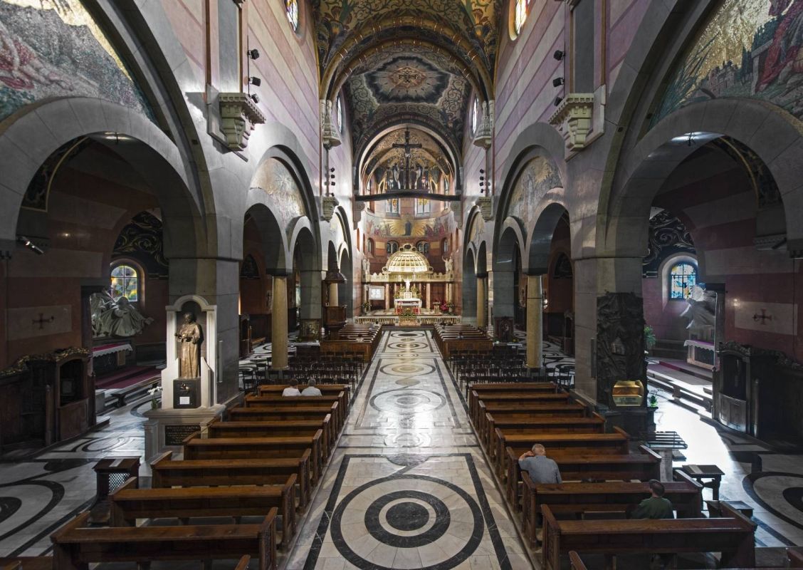 Это один из самых больших храмов в Кракове (52x19 метров), над окрестностями возвышается его 68-метровая башня. Костел был построен в 1909-1912 годах, отделку завершили и передали храм в пользование после окончания I Мировой войны (освящение в 1921 году). В главном портале посетителей базилики приветствует каменная статуя Христа авторства Ксаверия Дуниковского. Необыкновенно красочное и лиричное оформление интерьера создают полихромия, мозаики и лепной декор. В глаза особенно бросается 30-метровый мозаичный фриз над главным алтарем, представляющий преклонение перед Христом польских святых и блаженных, а также народ, ведомый королевской четой Владиславом II Ягелло и Св. Ядвигой. Среди других изображений стоит обратить внимание на фигуры Св. Христофора и Св. Лонгина на коне, пробивающего копьем тело распятого Иисуса.