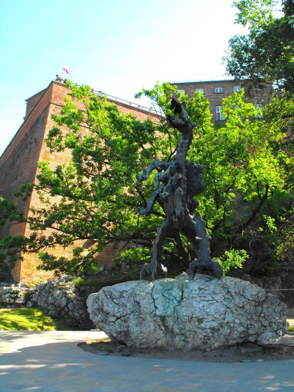 Давным-давно храбрый сапожник Скуба победил дракона, который наводил ужас на жителей Кракова. Он прибегнул к хитрой уловке – подкинул чудовищу овцу, начиненную серой. Дракон съел ее, захотел пить, выпил половину Вислы и лопнул. В память об этой легенде на бульваре более 40 лет назад была установлена 6-метровая статуя Вавельского дракона, автор – Бронислав Хромы. К скульптуре подведен природный газ, так что дракон извергает настоящий огонь и отпугивает всех, кто хочет ограбить его пещеру.