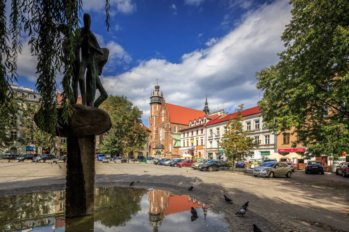 По примеру Кракова соседний город Казимеж вскоре после получения городского права в XIV веке определил свою рыночную площадь, через центр которой проходил соляной торговый путь (ныне улица Краковская), ведущий в направлении Велички и Бохни. Большая площадь (размером 195 на 195 метров) являлась административно-торговым центром. Здесь была возведена ратуша (которая сохранилась и по сей день), весы и стригальня, а мясные лавки и суконные магазины делили ее на две части. Раз в неделю, по субботам, здесь торговали также работающие вне гильдии мясники. От этой привилегии – forum liberum (право свободной (вольной) торговли) – происходит используемое до настоящего времени название площади.