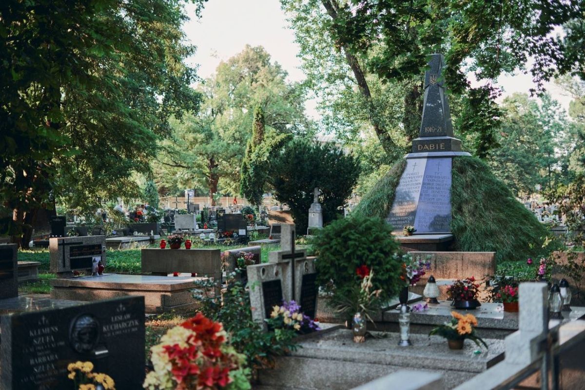 Наиболее давний участок кладбища создан в виде парка с центральной точкой – часовней, за которой аллейки формируют полукруг. Этот символичный проект, напоминающий ворота, должен был отображать тайну перехода сквозь врата в вечность.