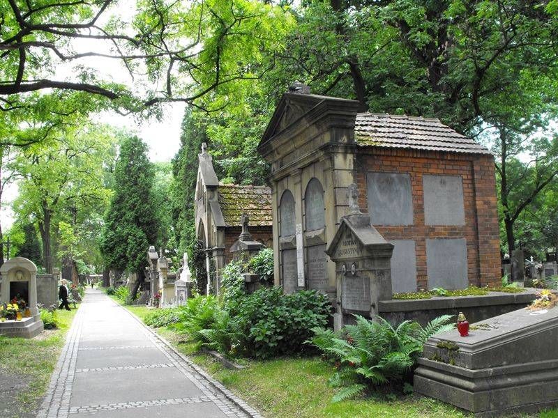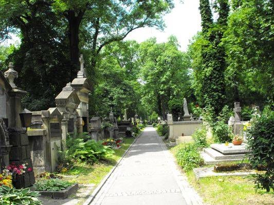 Вдоль стены у главного входа, слева находятся самые давние могилы и памятные плиты первых захоронений, в том числе, первой похороненной здесь Аполлонии Бурсиковой, молодой мещанки, умершей от туберкулеза в январе 1803 года. Прогуливаясь по главной аллее, вы дойдете к могиле Яна Матейко – выдающегося художника, представителя историзма, изображавшего на своих картинах важнейшие события истории Польши. Аллея заведет вас дальше к надгробию актрисы, хорошо известной на обоих берегах Атлантики – Хелены Моджеевской. В самой старой части кладбища находятся также известные кладбищенские скульптуры, в том числе, Ангел Мести (посвященный жертвам обстрела Кракова австрийцами в 1848 году) и трогательная фигура женщины в трауре на могиле Фальтеров. Необычный надгробный памятник, обращающийся к «Умершему классу» (изображает мальчика, читающего книгу за школьной партой), задумал для себя Тадеуш Кантор – художник, сценограф, режиссер, создатель театра «Cricot 2» (участок LXXII). Кроме того, стоит посетить участок LXIX, где разбита Аллея Заслуженных – пантеон польской современной культуры. Там вы найдете, в частности, могилу художника Ежи Новосельского, основателя кабаре «Пивница под Баранами» Петра Скшинецкого, а также певца и поэта Марека Гжехуты. В скромной могиле вдали от элитных участков кладбища покоится лауреатка Нобелевской премии по литературе Вислава Шимборская, всегда избегавшая почестей.