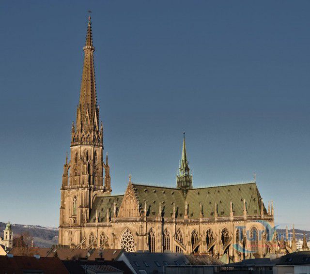 Собор Непорочного Зачатия Пресвятой Девы Марии или Новый собор – второй по величине собор в Австрии. Высота башни Нового собора — 135 метров. Изначально планировалось, что башня собора будет еще выше, но в то время по католическим канонам, ни одно здание в стране не могло быть выше главной святыни в стране - южной башни собора Святого Стефана в Вене, высота которой составляла 136,5 метров. Проект архитектора Винсента Штаца, был отправлен на доработку. Хотя собор считается вторым по высоте, но по количеству прихожан, которые могут вместиться во время церковных служб, а это около 20 000 человек, и занимаемой площади, храм можно назвать самым большим в Австрии. Планы по строительству собора были представлены в 1855 году епископом Францем Йозефом Рудигером. Спустя семь лет, в 1862 году, был заложен первый камень. А в 1924 году собор был освящен епископом Иоганнесом Мария Гфёлльнером. Таким образом, храм строился более 60 лет. Собор построен в привычном для тех времён французском готическом стиле. Особого внимания заслуживают витражи на окнах собора. Наиболее известным является окно Линц, на котором изображена история города Линц. Витражи являются настоящим произведением искусства. Помимо исторической и религиозной тематики, здесь отображены образы благотворителей и строителей храма. Во время Второй мировой войны от бомбёжек некоторые витражи, особенно в южной части собора, были сильно повреждены. Вместо того чтобы восстанавливать оригинальные окна, здесь установили витражи, отображающие современное искусство. Всего в соборе более 2000 витражей. Помимо витражей Новый собор известен еще своим великолепным органом. Собор открыт для всех желающих, посетить его можно в любой день с самого утра до 19 вечера. Посещение в составе экскурсии позволяет не только насладиться красотами церкви, но и услышать много интересного о ней.
