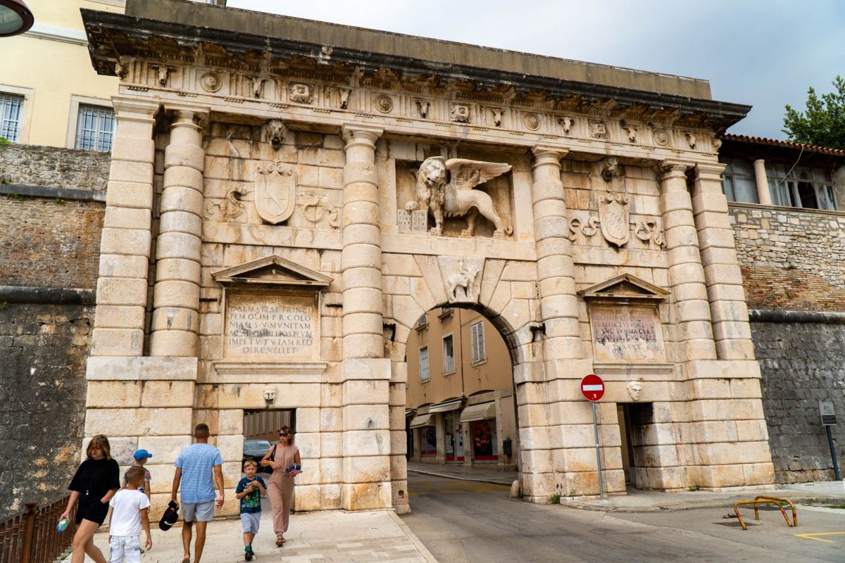 Средневековые сухопутные ворота были построены в 1543 году и до сих пор излучают таинственность и трепет. Они были возведены высоко над уровнем моря с резной фигурой Святого Хрисогона на коне и крылатого льва Святого Марка, гербом Венецианской республики, так что со временем эти ворота стали одним из самых красивых памятников и шедевром архитектуры эпохи Возрождения.