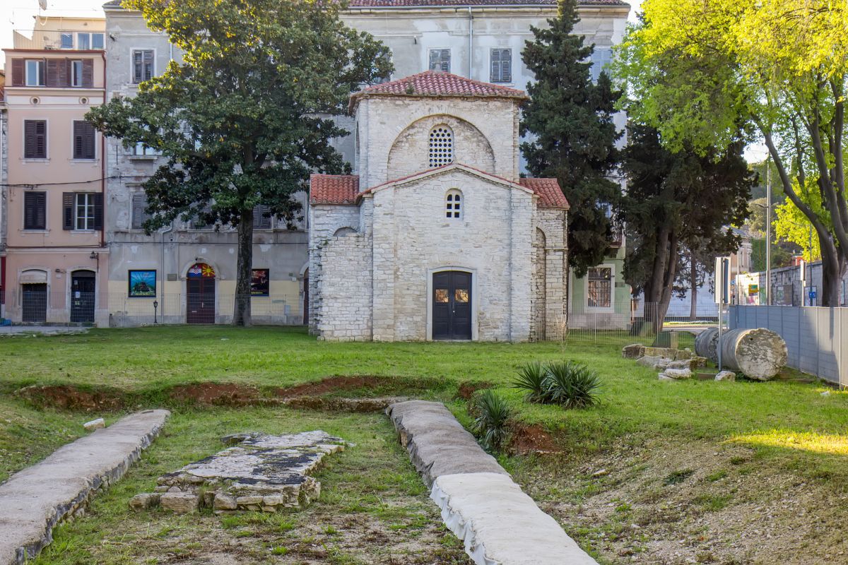 Это одна из двух часовен, построенных в 6 веке как часть большого бенедиктинского аббатства, снесенного в 16 веке. Пол и стены были украшены мозаикой, часть которой сейчас находится в Археологическом музее Истрии. Он был построен в стиле церквей Равенны, с той лишь разницей, что вместо кирпича использовался камень. Благодаря своим размерам, методу строительства и хорошей сохранности часовня представляет собой выдающийся архитектурный шедевр своего времени.