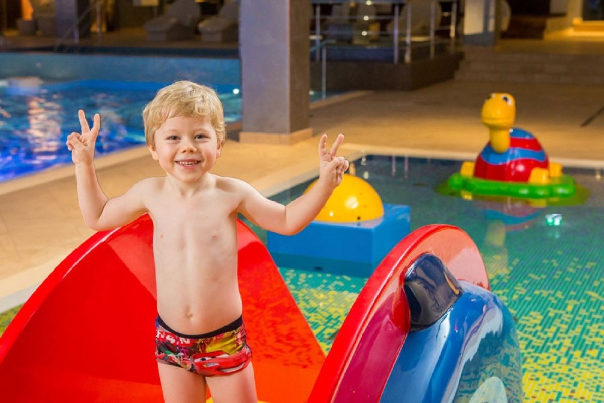У V Spa найдется что предложить каждому: доверьтесь подводному массажу в расслабляющем бассейне и порезвитесь с малышами в детском бассейне с замечательными водными аттракционами. Самые юные посетители могут веселиться на «дорожке затонувших кораблей» для маленьких детей. Забудьте о заботах в японском бассейне, наполненном теплой водой, или наберитесь смелости пройти по терапевтической дорожке Кнейпа с холодной и теплой водой.