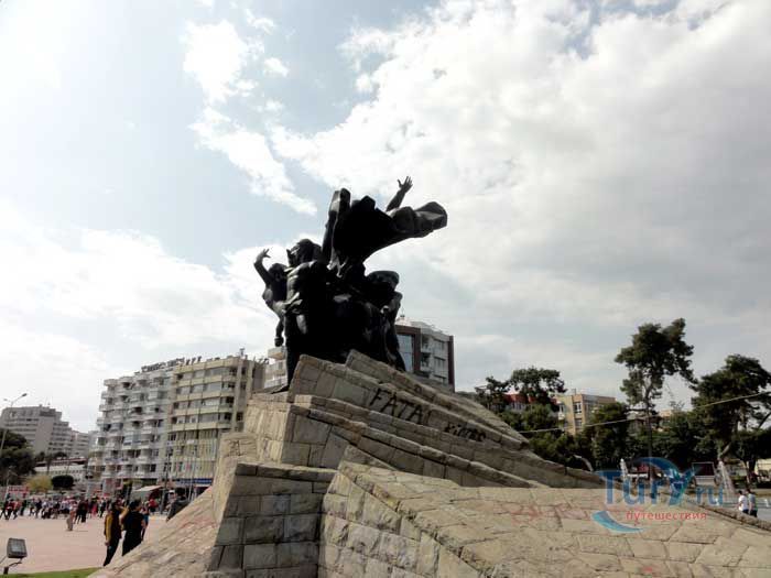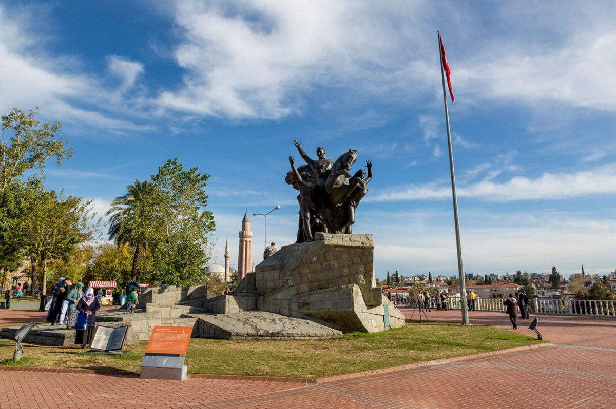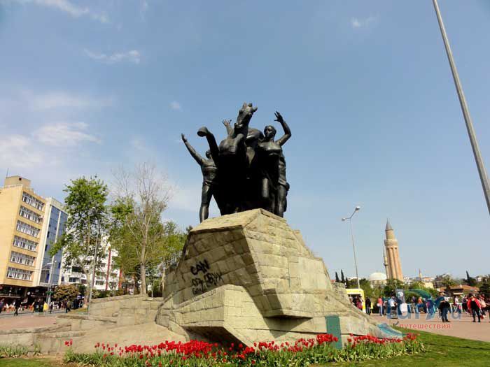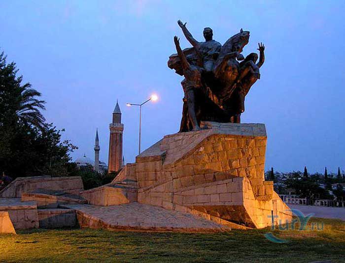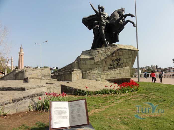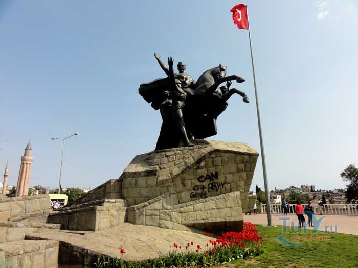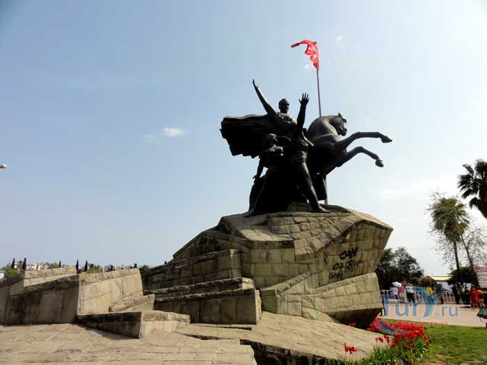 Мустафа Кемаль Ататюрк - известный политический и государственный деятель, военачальник, основатель и первый лидер Республиканской народной партии Турции, первый президент Турецкой Республики. В Анталье в 1964 году был открыт памятник в его честь. Памятник расположен в самом центре, на площади Республики. Ататюрк восседает на коне в окружении народа. Мощные мужские и женские торсы, сильные тела и руки, устремлены в светлое будущее в едином порыве. В Турции Ататюрк почитается как военачальник, сохранивший независимость страны, и как великий реформатор.