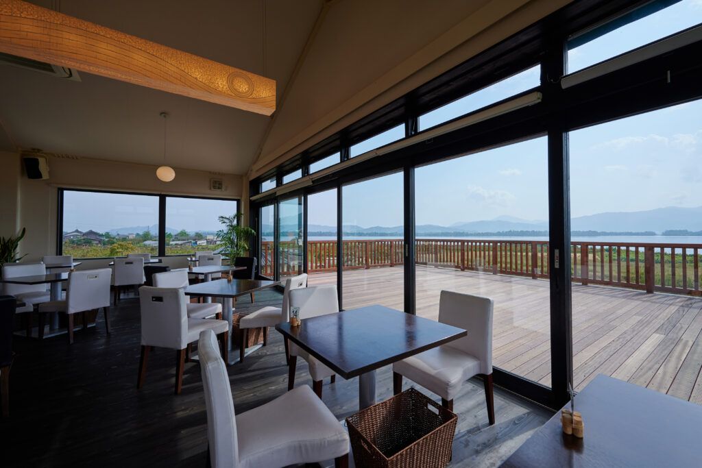 В ресторане на втором этаже вы можете отведать блюда, приготовленные из местных продуктов, наслаждаясь вином собственного производства.