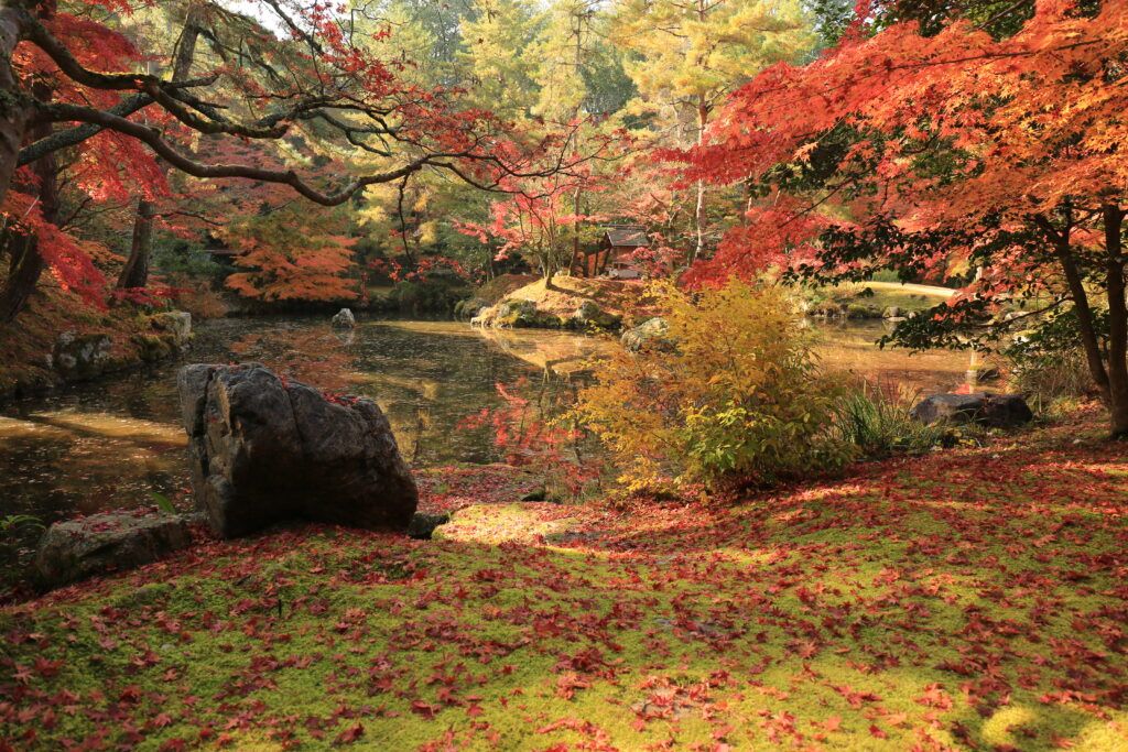 Сад, окружающий храмы, называется «Кинрюкай» и засажен кленами, которые осенью окрашивают весь сад в красный оттенок, что делает Омото Байсё-эн одним из самых известных мест для осмотра достопримечательностей в Аябэ. Сад спроектирован как микрокосм мира с прудами и островами, имитирующими основные пять континентов. Кроме того, рядом с залом «Чосайден» растет одно большое вишневое дерево под названием «Сакура Конохана», которое цветет ежегодно примерно в середине апреля.